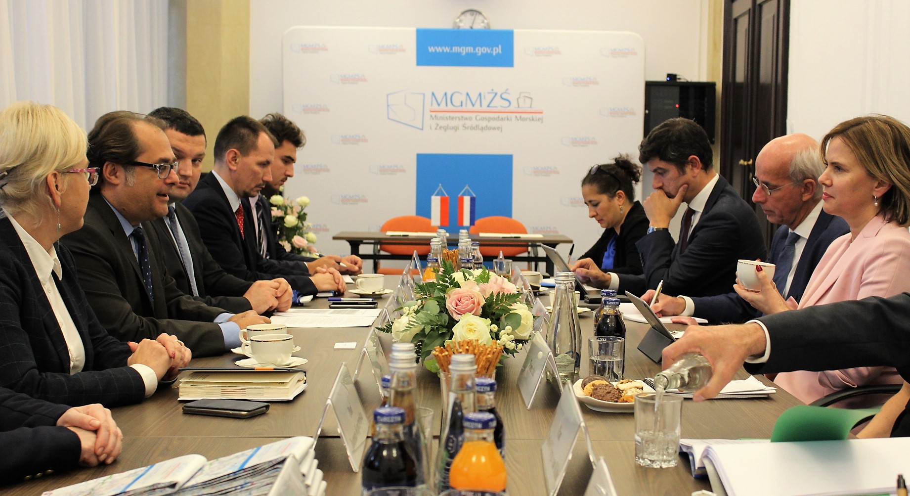Po południu tego samego dnia w siedzibie Ministerstwa Gospodarki Morskiej i Żeglugi Śródlądowej odbyło się spotkanie kierownictwa resortu z holenderską minister. Marek Gróbarczyk oraz Cora van Nieuwenhuizen omawiali ważne z punktu widzenia obu krajów kwestie związane z gospodarką wodną i transportem. Rozmowy dotyczyły przede wszystkim współpracy w zakresie dróg śródlądowych i europejskiej sieci transportowej TEN-T.