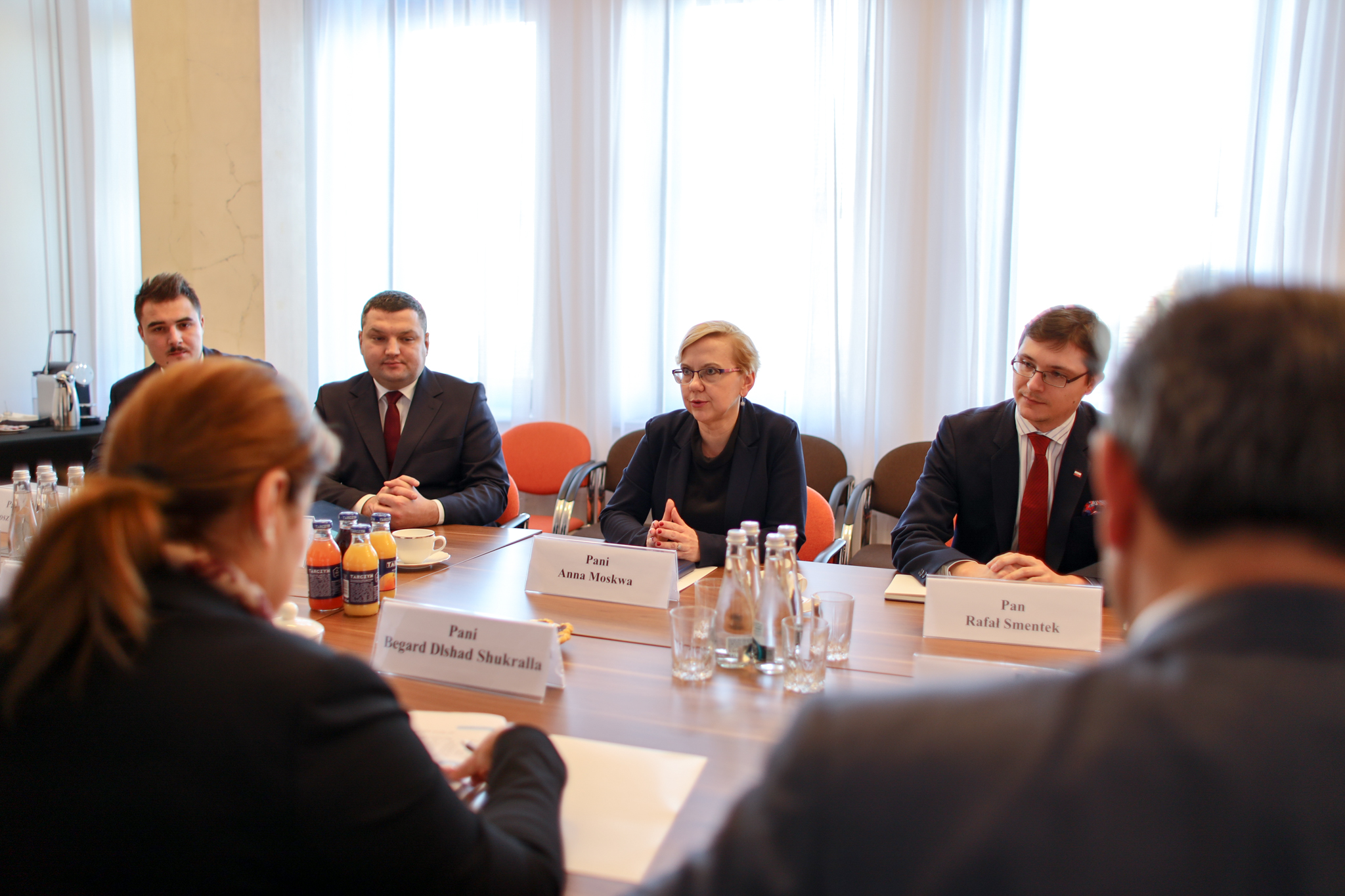 15 stycznia 2020 r. w siedzibie Ministerstwa Gospodarki Morskiej i Żeglugi Śródlądowej miało miejsce spotkanie Podsekretarz Stanu w MGMiŻŚ Anny Moskwy z Minister Rolnictwa i Zasobów Wodnych Rządu Regionalnego Kurdystanu, Begard Dishad Shukralla.