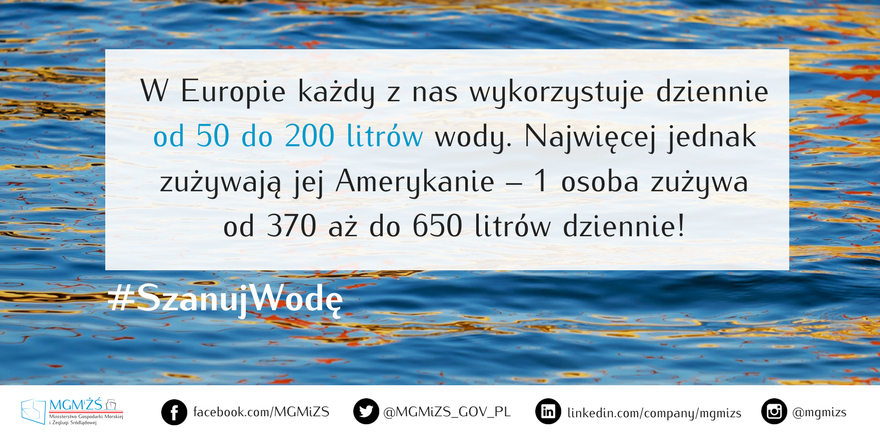 – Polska znajduje się na przedostatnim miejscu w Unii Europejskiej pod względem zasobów wody – przypomina Ministerstwo Gospodarski Morskiej i Żeglugi Śródlądowej. Hasłem #SzanujWodę resort zachęca Polaków do oszczędzania wody w przypadający na 22 marca Światowy Dzień Wody.