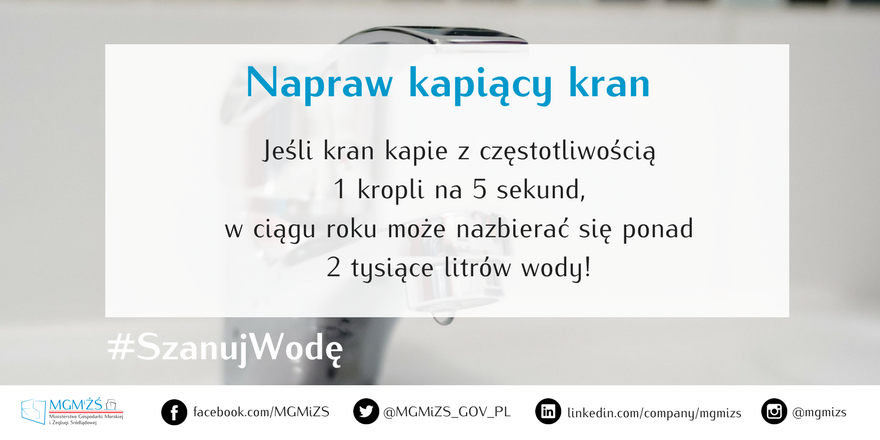 – Każdy z nas, nawet błahymi – wydaje się – zmianami w korzystaniu z wody w swoim domu, może przyczynić się do jej oszczędzania. Czasem wystarczy drobna wymiana uszczelki w przeciekającym kranie i na koniec roku mamy oszczędność na poziomie kilku tysięcy litrów wody – dodaje minister Gróbarczyk.