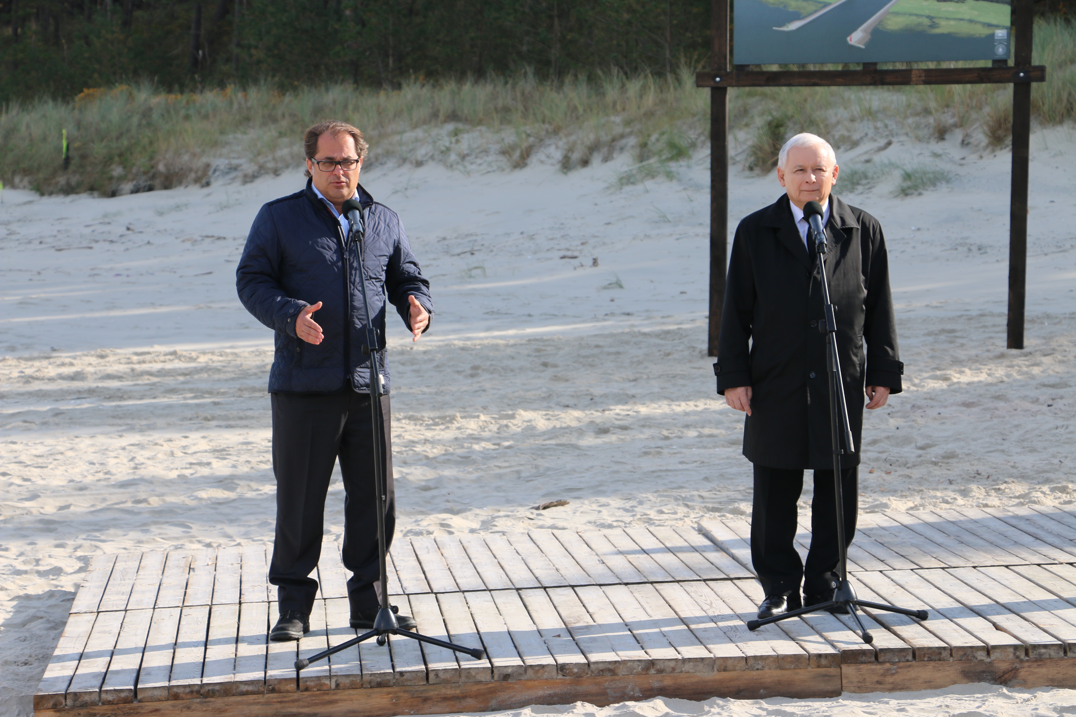 We wtorek 16 października na miejscu realizacji przekopu przez Mierzeję Wiślaną odbyła się konferencja prasowa z udziałem ministra gospodarki morskiej i żeglugi śródlądowej Marka Gróbarczyka, prezesa Prawa i Sprawiedliwości Jarosława Kaczyńskiego oraz posła Jerzego Wilka.