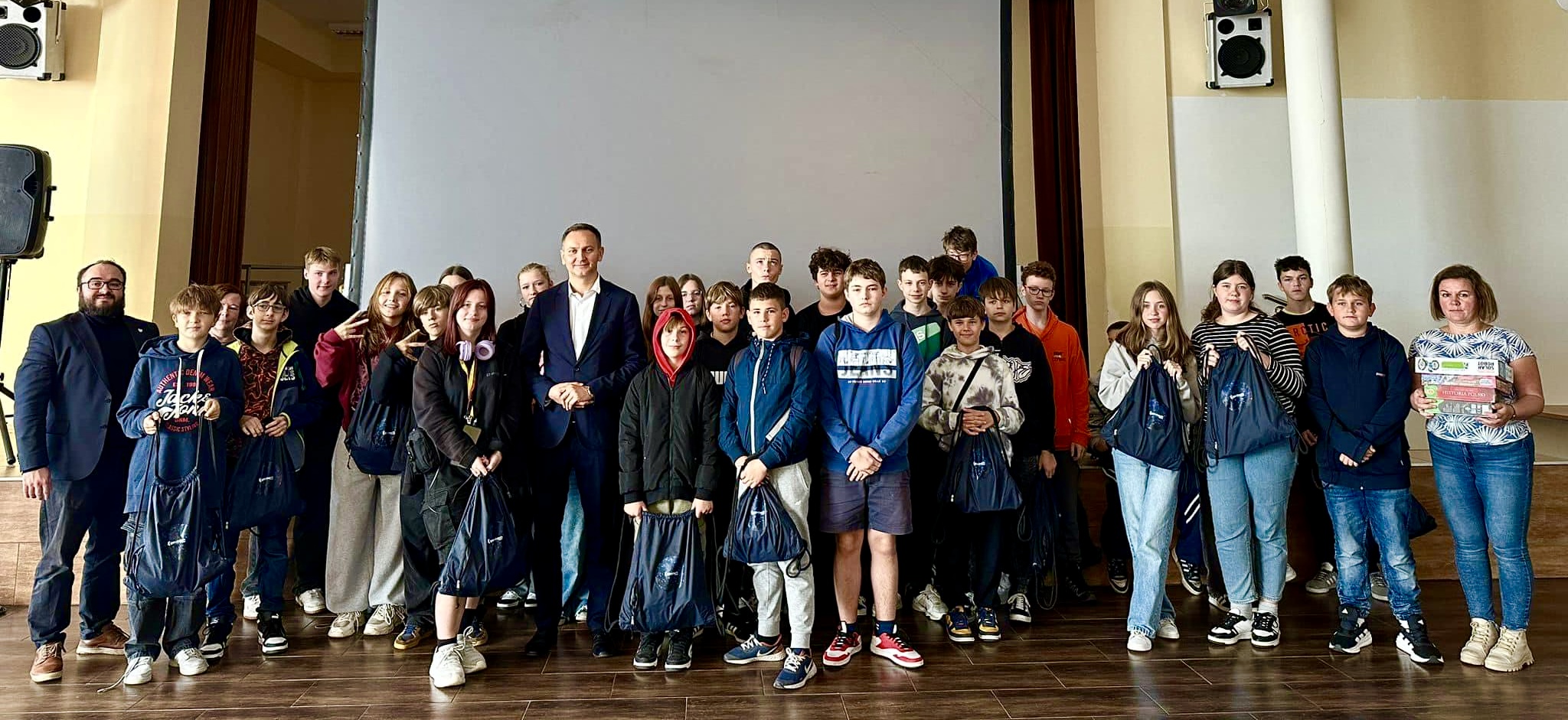 Spotkanie odbyło się w ramach Zielonych Szkół dla Powodzian – akcji zainicjowanej przez Ministerstwo Edukacji. Departament Govtech Polska z Ministerstwa Cyfryzacji przekazał licealistom m.in. powerbanki, by w trudnych momentach zapewnić dostęp do niezbędnych informacji.