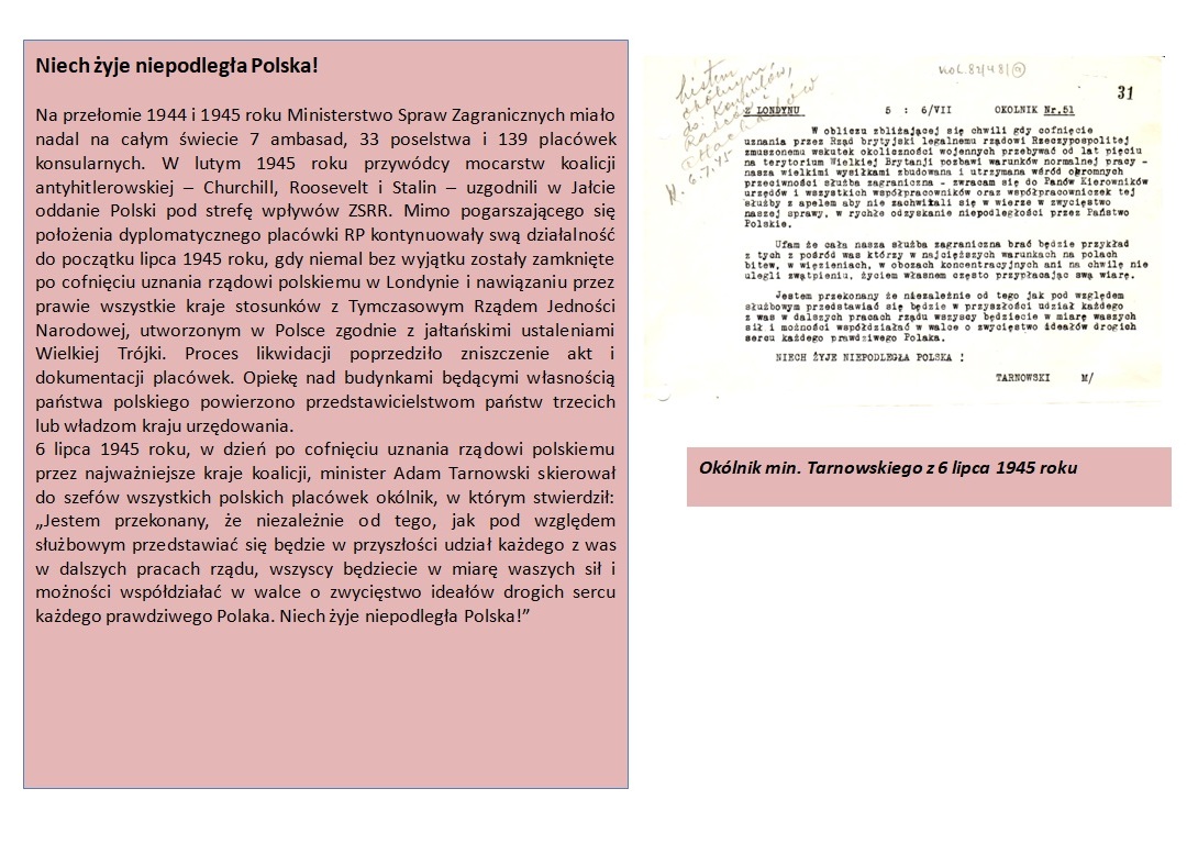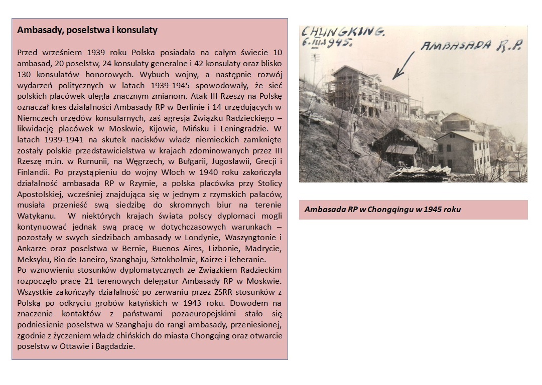 Z okazji 75 rocznicy zakończenia II wojny światowej zapraszamy do zapoznania się z prezentacją na temat działalności polskich służb dyplomatycznych i konsularnych podczas wojny i okupacji.