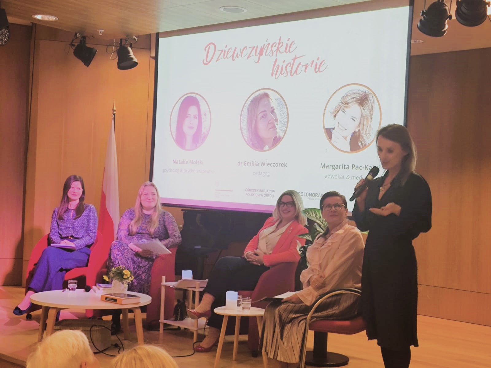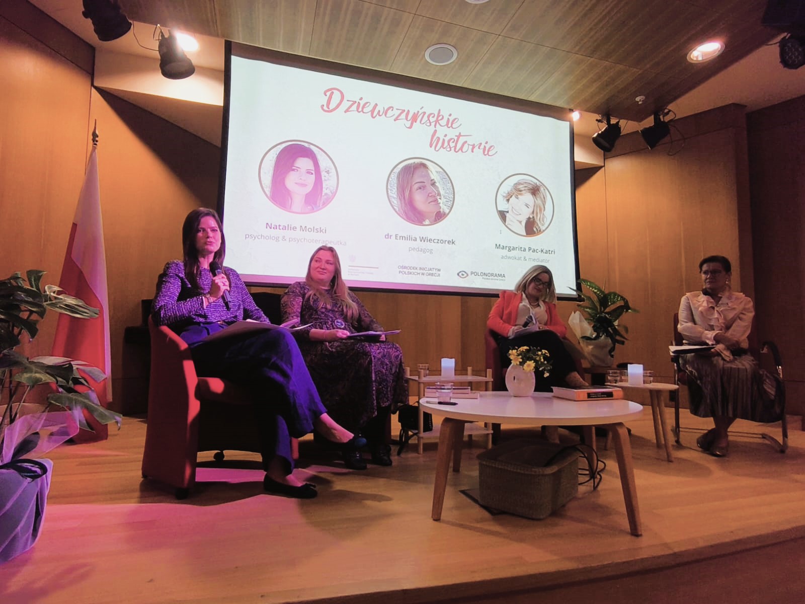 Podczas panelu dyskusyjnego, moderowanego przez Panią Katarzynę Jakielaszek, zostały zaproszone ekspertki: dr Emilia Wieczorek (pedagog), p. Dagmara Pats-Pomarnacka (adwokatka) oraz p. Natalia Molska (psychoterapeutka). Poruszyły one tematy presji społecznej, cyberprzemocy oraz wyzwań dwukulturowości. Wydarzenie, w którym udział wzięli m.in. wicekonsul Alicja Smati, attaché obrony ppłk. Adam Korolczuk oraz przedstawiciele Polonoramy i Rady Rodziców Szkoły Polskiej w Atenach, zakończyło się projekcją filmu „Dziewczyńskie historie” reżyserii Agi Borzym.
