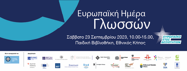 Świętuj z nami Europejski Dzień Języków 2023 w Bibliotece Dziecięcej w Ogrodzie Narodowym w Atenach, w sobotę 23 września 2023, w godzinach 10.00 - 15.00.