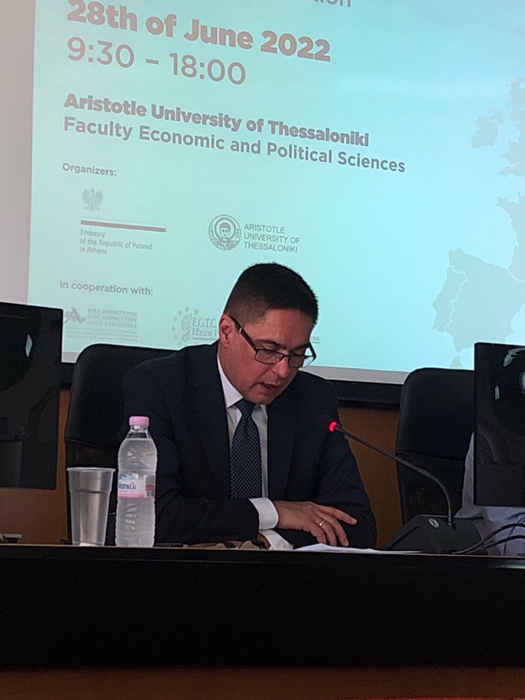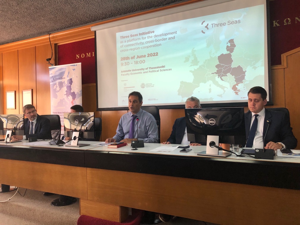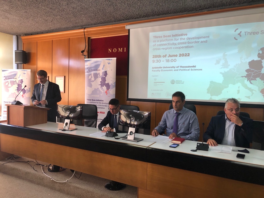 Ambasada RP w Atenach i Uniwersytet Arystotelesa w Salonikach, we współpracy z Europejskimi Ugrupowaniami Współpracy Terytorialnej: EGTC Amphictyony, EGTC Efxini Poli i EGTC Helicas, zorganizowali 28 czerwca 2022 r. w Salonikach konferencję „Three Seas Initiative as a platform for development of connectivity, cross-border and cross-region cooperation”. Konferencja miała formę hybrydową i odbyła się na Wydziale Ekonomii i Nauk Politycznych Uniwersytetu. Jej głównym celem było przybliżenie greckiemu odbiorcy potencjału i dynamiki rozwoju Inicjatywy Trójmorza, w szczególności w kontekście obecnych wyzwań geopolitycznych.