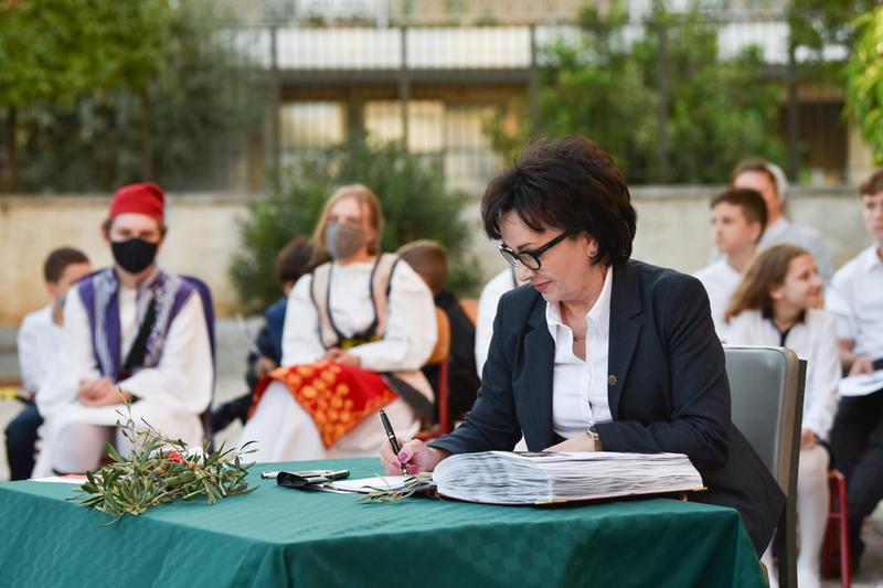 Ponadto Marszałek Sejmu złożyła wieniec na grobie Jerzego Iwanowa-Szajnowicza, polskiego i greckiego bohatera z okresu II wojny światowej. Spotkała się również z uczniami i nauczycielami Szkoły Polskiej im. Zygmunta Mineyki przy Ambasadzie RP w Atenach. Uczniowie zaprezentowali specjalnie przygotowany program artystyczny. Marszałek E. Witek dokonała wpisu do księgi pamiątkowej Szkoły i zadeklarowała ponowną wizytę oraz przekazanie Szkole nowego sztandaru, ufundowanego przez Kancelarię Sejmu RP.