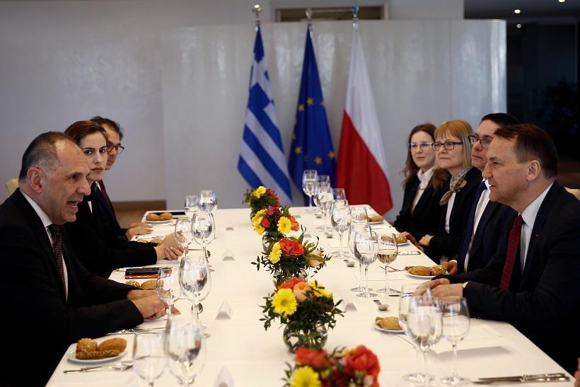 Rozmowy szefów dyplomacji Polski i Grecji dotyczyły szerokiego spektrum polsko-greckich spraw dwustronnych, a także kluczowych tematów z agendy Unii Europejskiej i bieżących wyzwań międzynarodowych. Szefowie polskiej i greckiej dyplomacji zgodzili się z bardzo wysoką oceną stanu dwustronnych relacji politycznych oraz wspólnej wizji przyszłości UE w kontekście czerwcowych wyborów do Parlamentu Europejskiego. Ministrowie Sikorski i Gerapetritis podzielają też poglądy w sprawie kluczowych kwestii dotyczących bezpieczeństwa i stabilności w Europie i na świecie, w tym konieczności dalszego wsparcia dla Ukrainy w obliczu brutalnej rosyjskiej agresji na ten kraj.