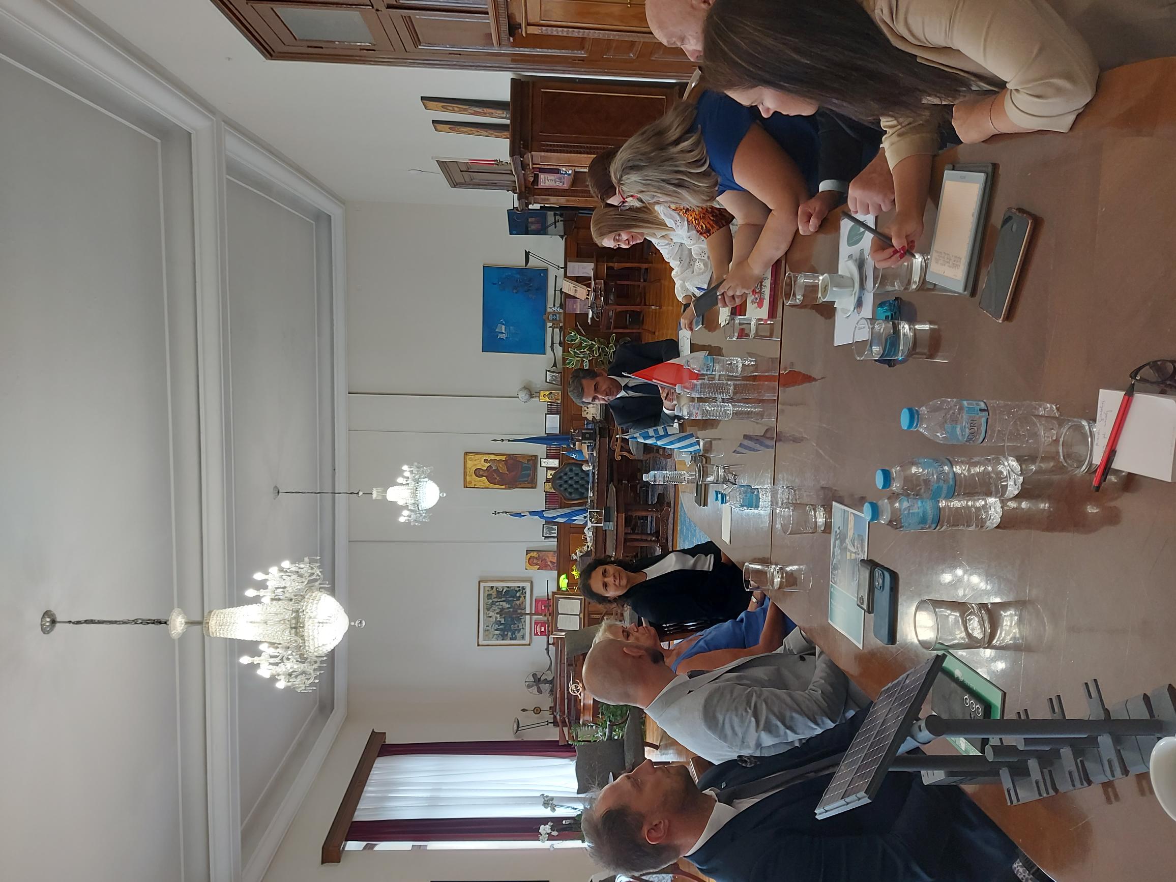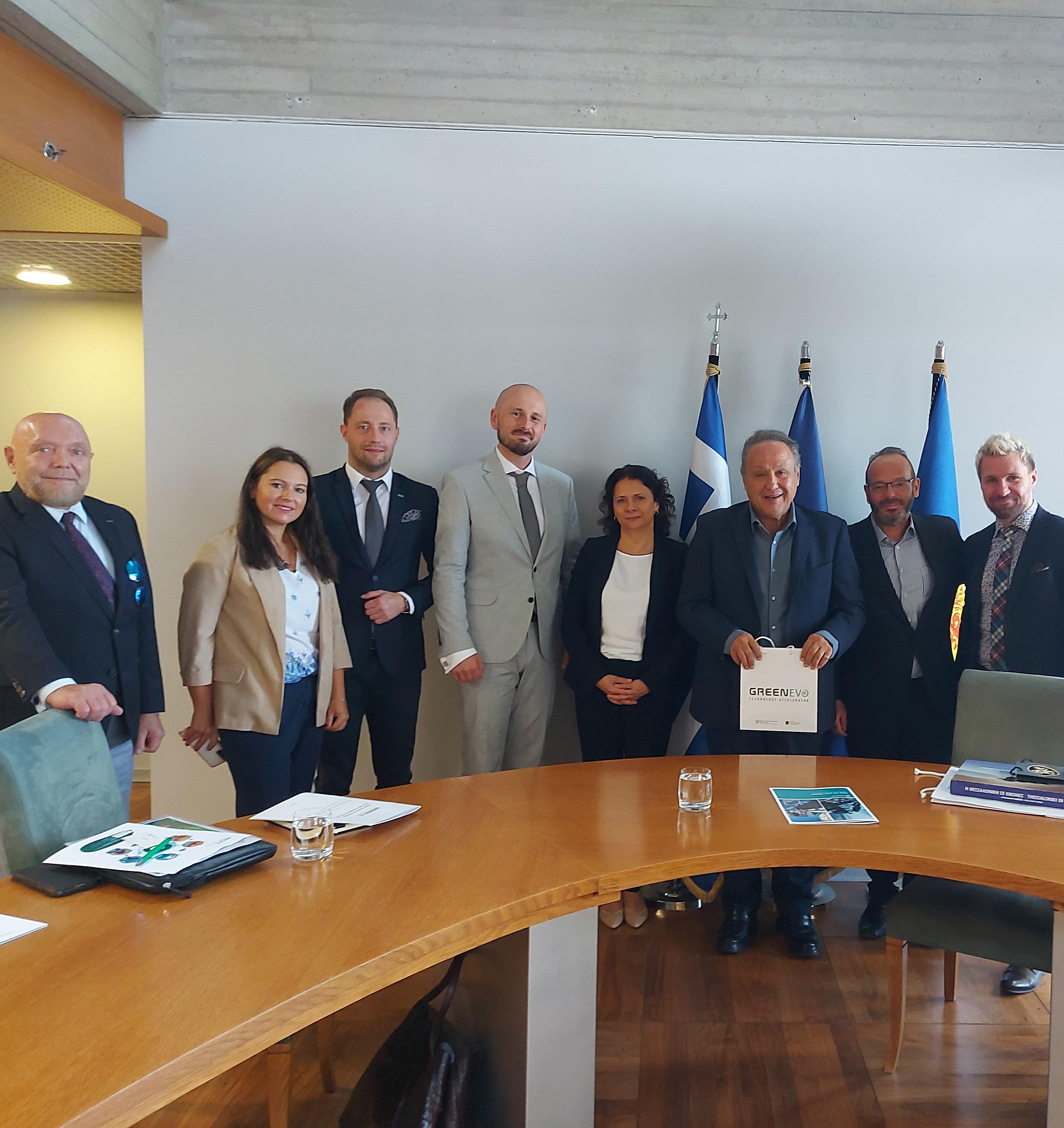 Istotne miejsce w agendzie wizyty zajęły również rozmowy prowadzone przez delegację Ministerstwa Klimatu i Środowiska i GreenEvo z przedstawicielami władz lokalnych. Polska oferta zielonych technologii i możliwości zaadaptowania konkretnych rozwiązań do lokalnych warunków została przedstawiona Wiceministrowi Spraw Wewnętrznych ds. Macedonii i Tracji, panu Konstantinosowi Gioulekasowi, Gubernatorowi Regionu Macedonii Centralnej, panu Apostolosowi Tzitzikostasowi oraz Prezydentowi Miasta Saloniki, panu Steliosowi Angeloudisowi. Podczas spotkań dyskutowano o aktualnych wyzwaniach związanych ze zmianą klimatu, zazielenianiu aglomeracji miejskich, konsekwencji susz i pożarów oraz kwestiach gospodarki wodno-ściekowej.