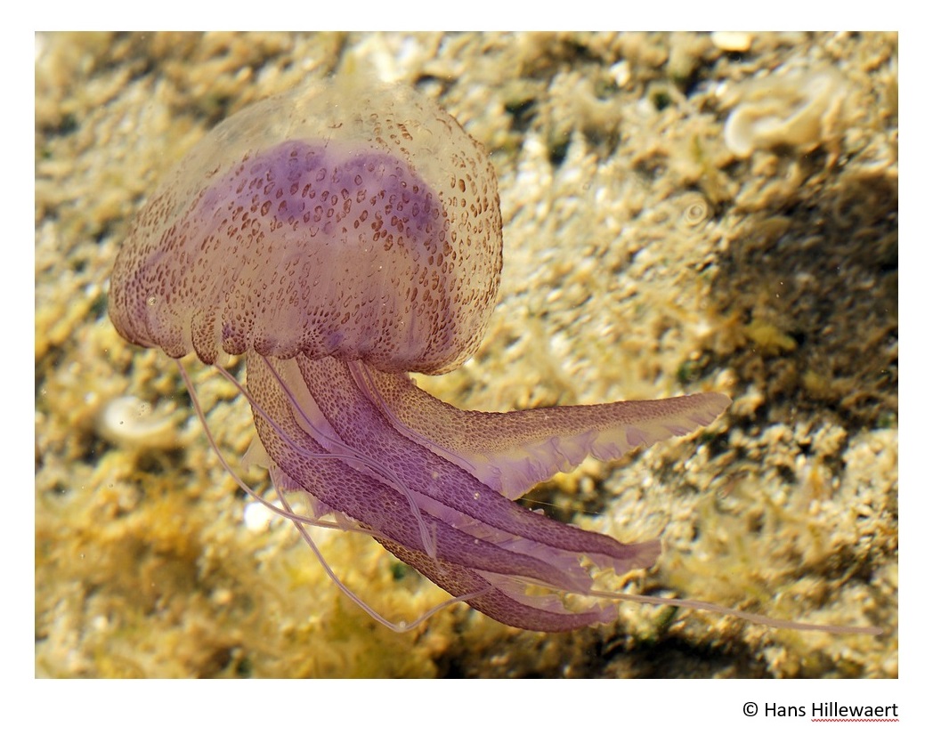 Meduzy tego gatunku mają one charakterystyczny różowo-fioletowy kolor, średnicę ok. 10 cm i dochodzące do 2 m. parzydełka, które zawierają neurotoksynę. Młodociane osobniki mają kolor zółtawo-pomarańczowy i są znacznie mniejsze.
