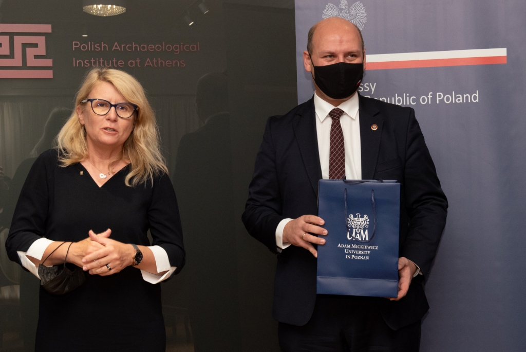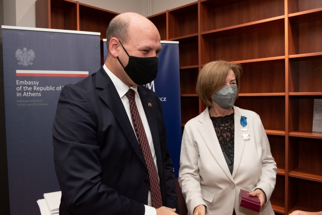 Kolejnym wydarzeniem było wręczenie wysokiego polskiego odznaczenia, Krzyża Kawalerskiego Orderu Zasługi RP pani profesor Georgii Kokkorou-Alevra, w dowód uznania za jej wkład w rozwój polsko-greckiej współpracy naukowej w dziedzinie archeologii. Odznaczenie wręczył minister Szymon Szynkowski vel Sęk. Profesor G. Alevra od wielu lat współpracuje z polskimi archeologami, głównie z Uniwersytetu Jagiellońskiego, co doprowadziło do wydania serii interesujących publikacji.