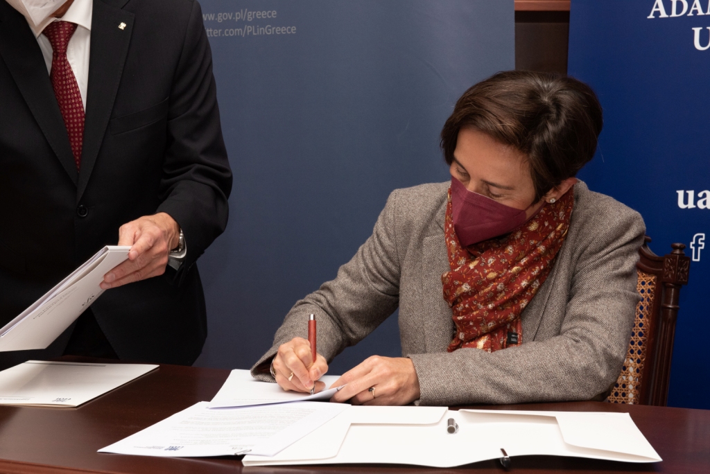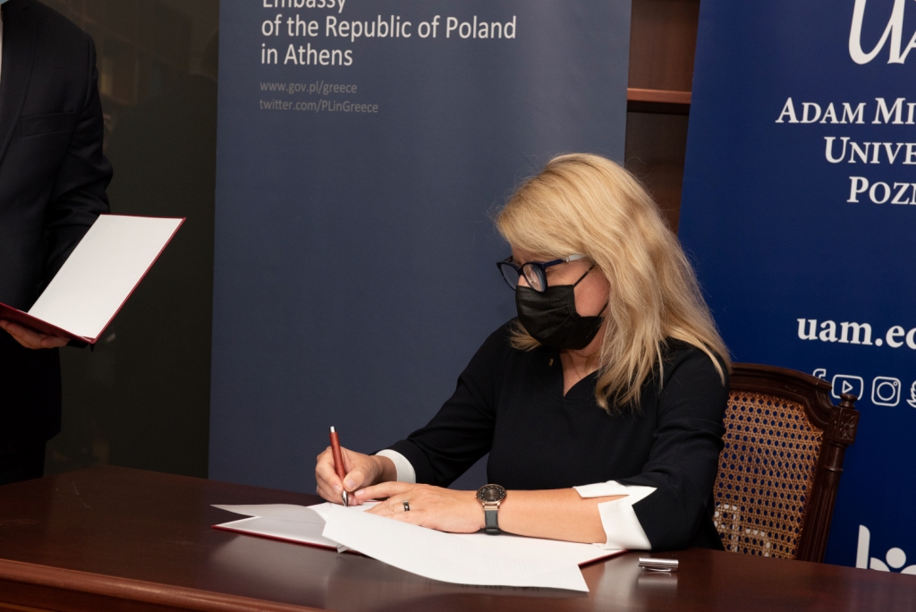 Listu Intencyjnego o współpracy w zakresie promocji Rzeczypospolitej Polskiej na terytorium Republiki Greckiej pomiędzy Ministerstwem Spraw Zagranicznych RP, reprezentowanym przez Sekretarza Stanu Szymona Szynkowskiego vel Sęka oraz Uniwersytetem im. Adama Mickiewicza w Poznaniu, reprezentowanym przez Rektorkę UAM prof. Bogumiłę Kaniewską.