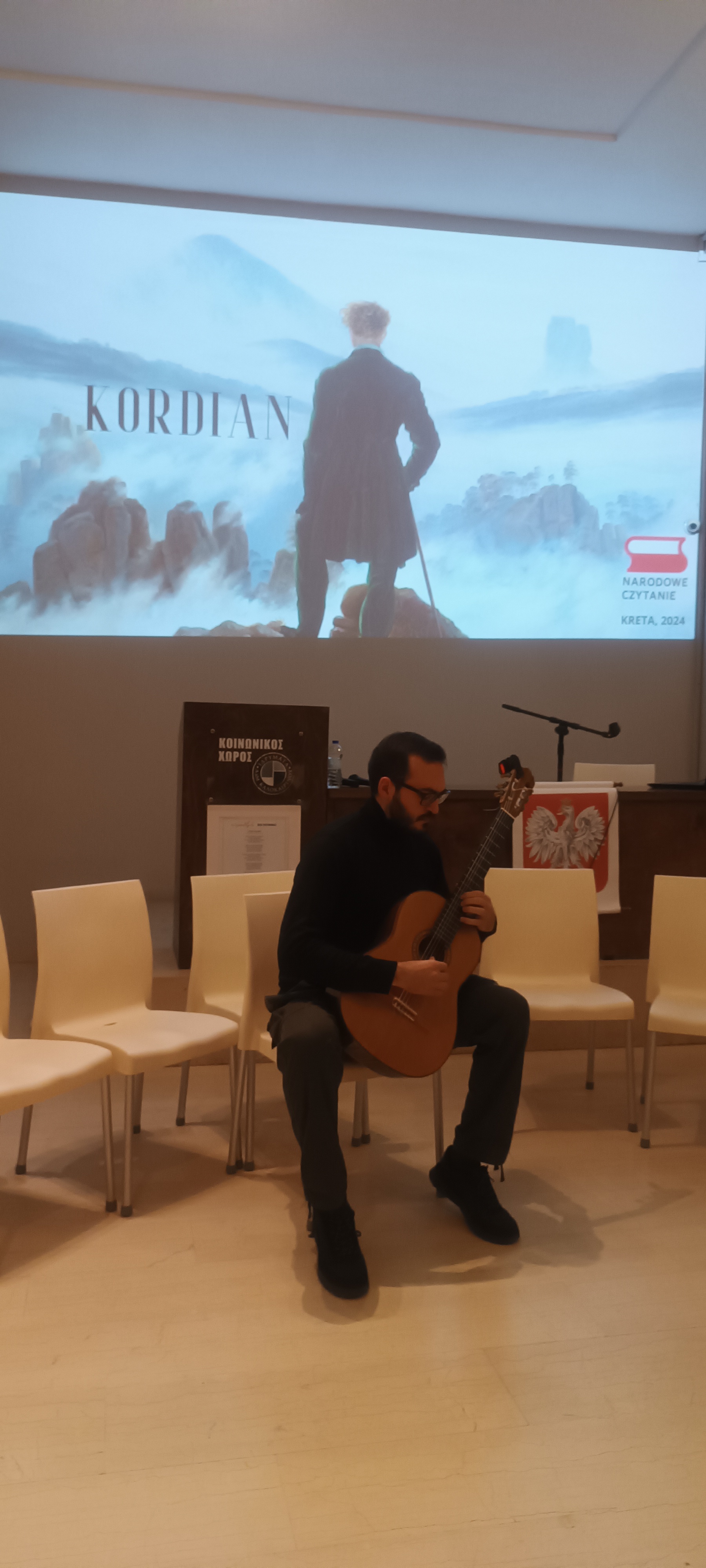 Spotkanie poprowadziła pani Karolina Krajnik, mieszkanka Heraklionu, autorka książki o Krecie. Oprawę muzyczną zapewnił gitarzysta Emmanuel Stivaktakis, który zaprezentował repertuar klasyczny z epoki romantyzmu.