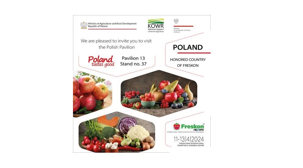 Polska będzie gościem honorowym na Międzynarodowych Targach Owoców i Warzyw FRESKON, które odbędą się w Międzynarodowym Centrum Wystawienniczo-Kongresowym Helexpo w Salonikach, w dniach 11-13.04.2024 r.