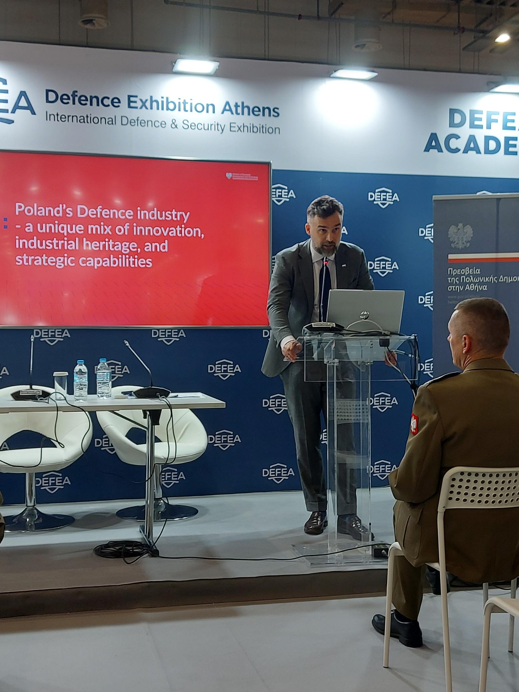 Ambasada we współpracy z Ministerstwem Rozwoju i Technologii zorganizowała także stoisko informacyjne, stanowiące platformę promocji krajowego przemysłu obronnego oraz wspierania współpracy gospodarczej z zagranicznymi partnerami. Obecność Polski na targach DEFEA 2025 jest wyrazem rosnącego zainteresowania polskich firm sektora obronnego obecnością na rynku greckim i szerzej na rynkach regionu (w tym państw arabskich zważywszy ogromne zainteresowanie przedstawicieli tych państw targami DEFEA). Dla Ambasady natomiast były ważnym elementem ułatwiającym kontakty i to zarówno w ramach administracji publicznej tego sektora jak i wśród firm.