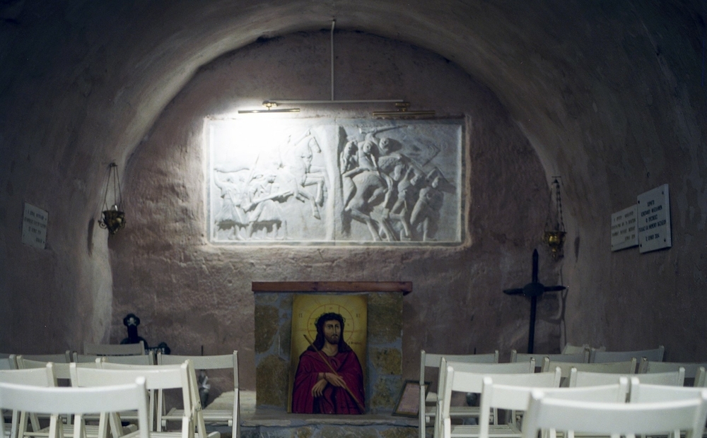 Na terenie świątyni znajduje się podziemna krypta o głebokości 3 m, która zachowała się od czasów weneckiego klasztoru. W 1839 r. złożono tam szczątki filhellenów, kórzy walczyli o wolność Grecji.