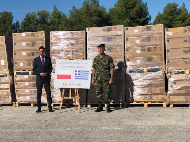 Dar Rządu RP w postaci 156 domów modułowych, przeznaczonych dla uchodźców i imigrantów na terenie Grecji, jest już w magazynie wojskowym pod Atenami. Oczekuje obecnie na wyznaczenie miejsca ostatecznej lokalizacji. 29 września Ambasador RP w Atenach Artur Lompart przekazał zawartość transportu na ręce przedstawiciela Sztabu Generalnego Sił Lądowych Grecji, generała dywizji Dimitriosa Sigoulakisa.