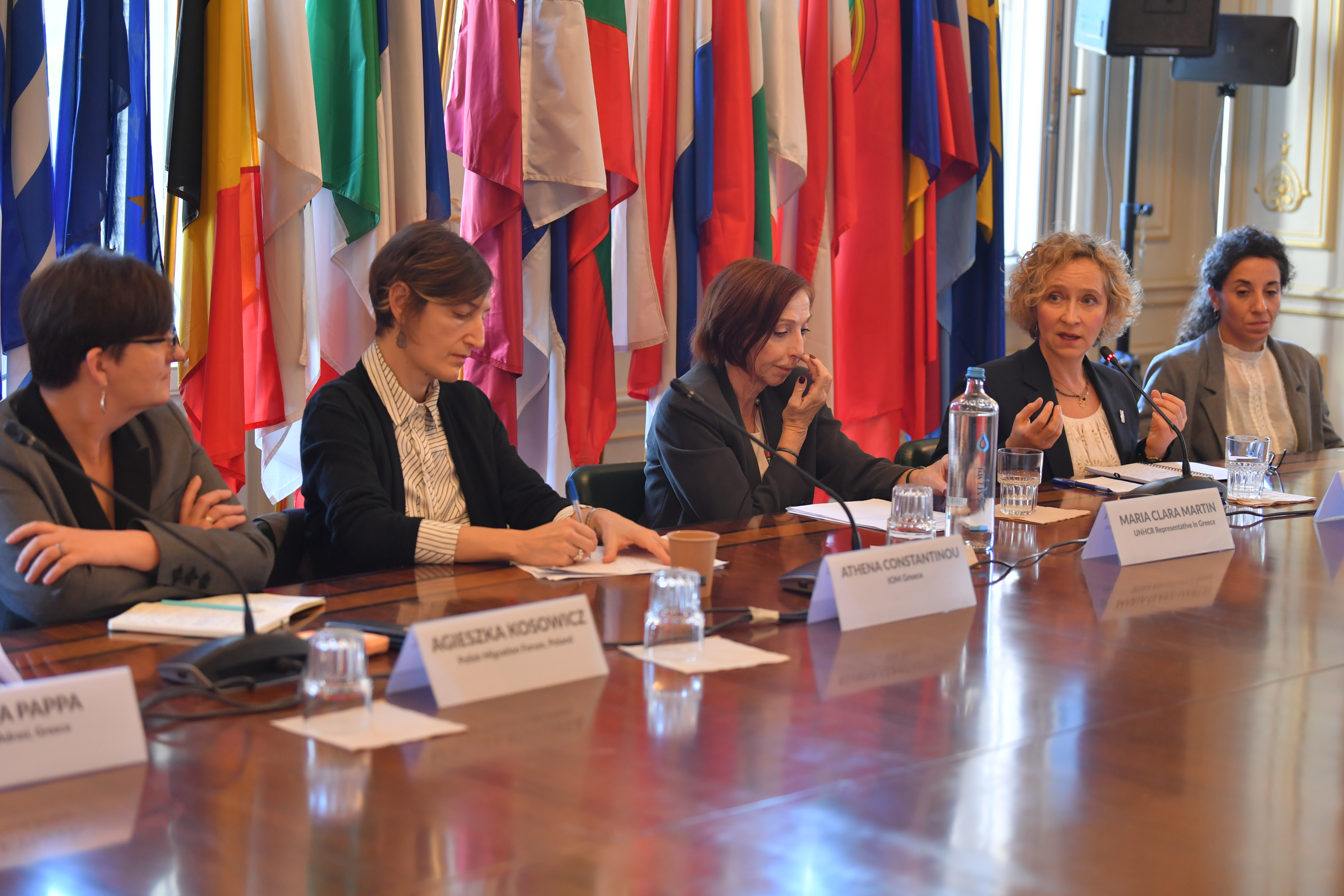 Spotkanie obejmowało dwa panele tematyczne. Pierwszy panel został poświęcony roli państwa i samorządów w tworzeniu oraz wdrażania polityk integracyjnych. W panelu wzięli udział Evangelia Ktistaki (dyrektor Departamentu Integracji Społecznej, Ministerstwo Migracji i Azylu, Grecja), Bartłomiej Potocki (dyrektor Departamentu Integracji Społecznej, Ministerstwo Rodziny, Pracy i Polityki Społecznej, Polska), Monika Chabior (wiceprezydent Gdańska ds. rozwoju społecznego i równego traktowania, Polska), Thanassis Chimonas (wiceburmistrz Aten ds. integracji migrantów i uchodźców, Grecja), Tamara-Elizabeta Iskra (pełnomocnik ds. integracji, dyrektor Biura ds. Integracji Miasto Biel/Bienne, Szwajcaria), Tobias Schläpfer (dyrektor szwajcarskiego biura ds. pomocy finansowej dla Grecji i Cypru, Ambasada Szwajcarii w Grecji). Panel moderowała Maria Clara Martin (UNHCR).