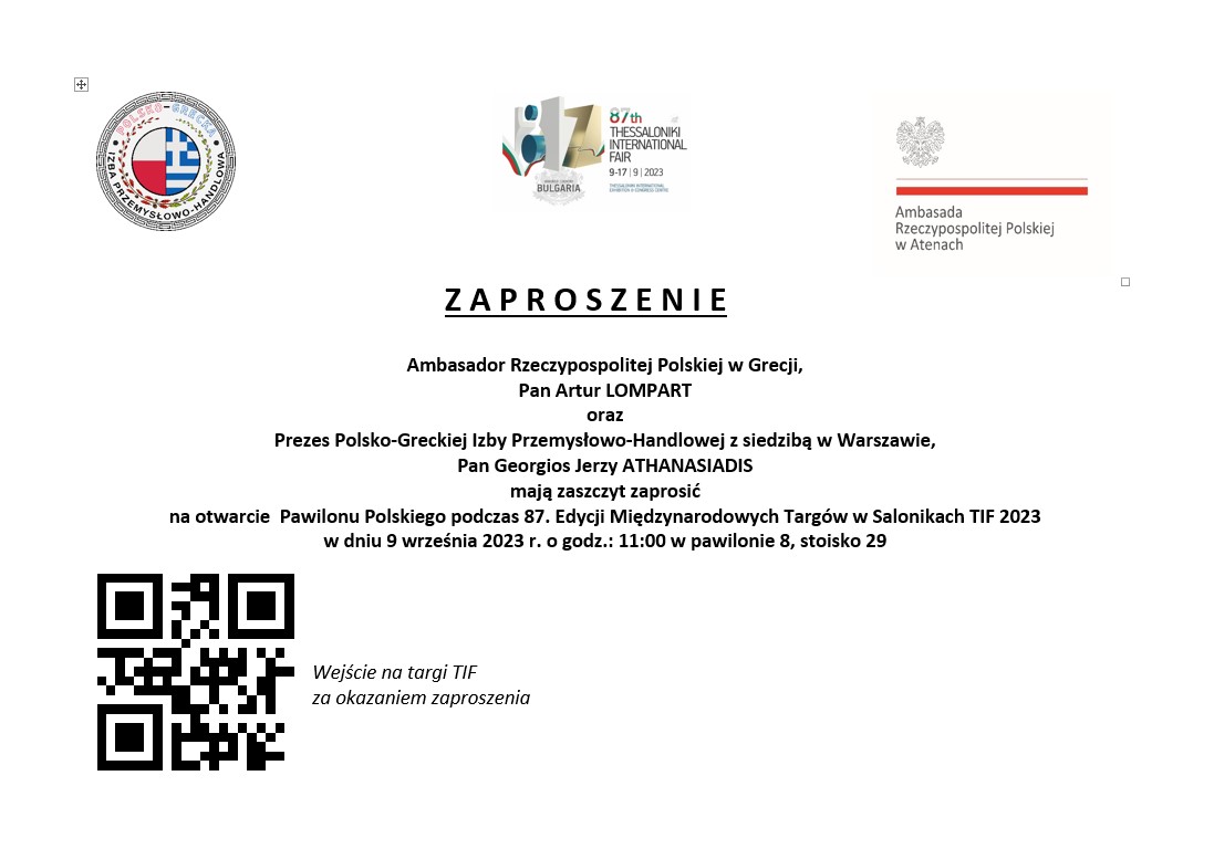Serdecznie zapraszamy do odwiedzenia Pawilonu Polskiego w pawilonie 8, stoisko 29 gdzie wspólnie z Polsko-Grecką Izbą Przemysłowo-Handlową z siedzibą w Warszawie przedstawimy możliwości współpracy gospodarczej z Polską.