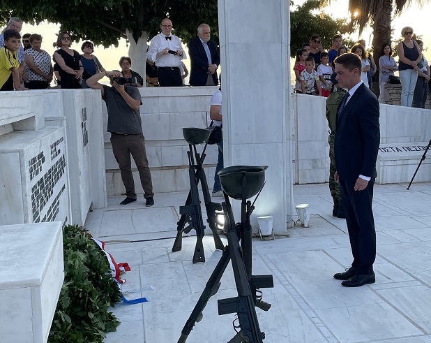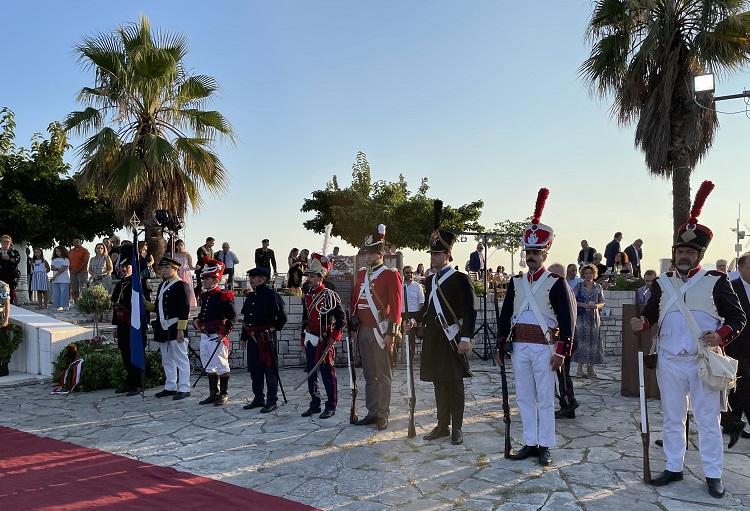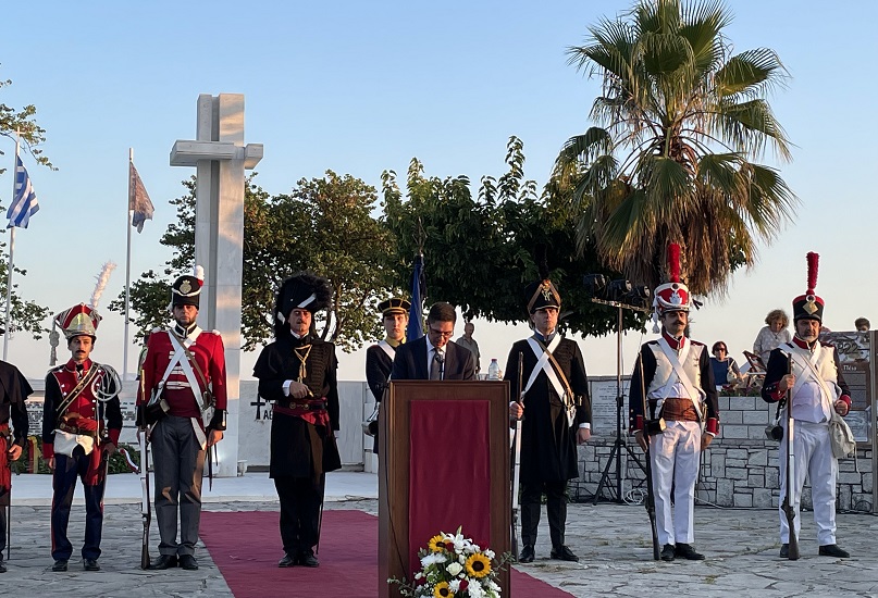 Ambasador RP złożył wieniec pod pomnikiem Filhellenów i przypomniał o udziale Polaków w walkach o wyzwolenie Grecji, a szczególnie tych, którzy zginęli w bitwie pod Petą. Mówiąc o greckim zrywie narodowościowym, Ambasador przypomniał, że „wszystkie narody Europy zjednoczyły się pod jednym sztandarem i walczyły przeciwko barbarzyństwu i tyranii, w obronie wspólnych wartości: wolności, demokracji, sprawiedliwości i praw człowieka”. Podkreślił przy tym, że dzisiaj, 200 lat po bitwie pod Petą naród ukraiński musi walczyć z Rosją o swoją wolność, suwerenność i integralność terytorialną, przy wsparciu społeczności międzynarodowej, w tym Polski i Grecji, dla których hasło „Wolność albo śmierć” nadal ma znaczenie.