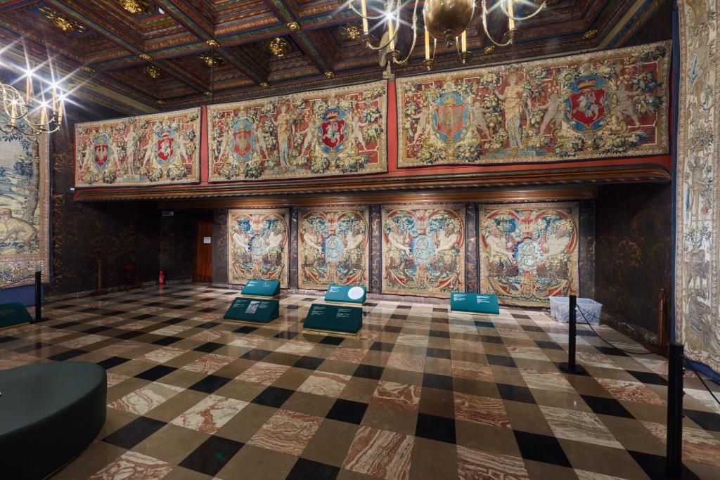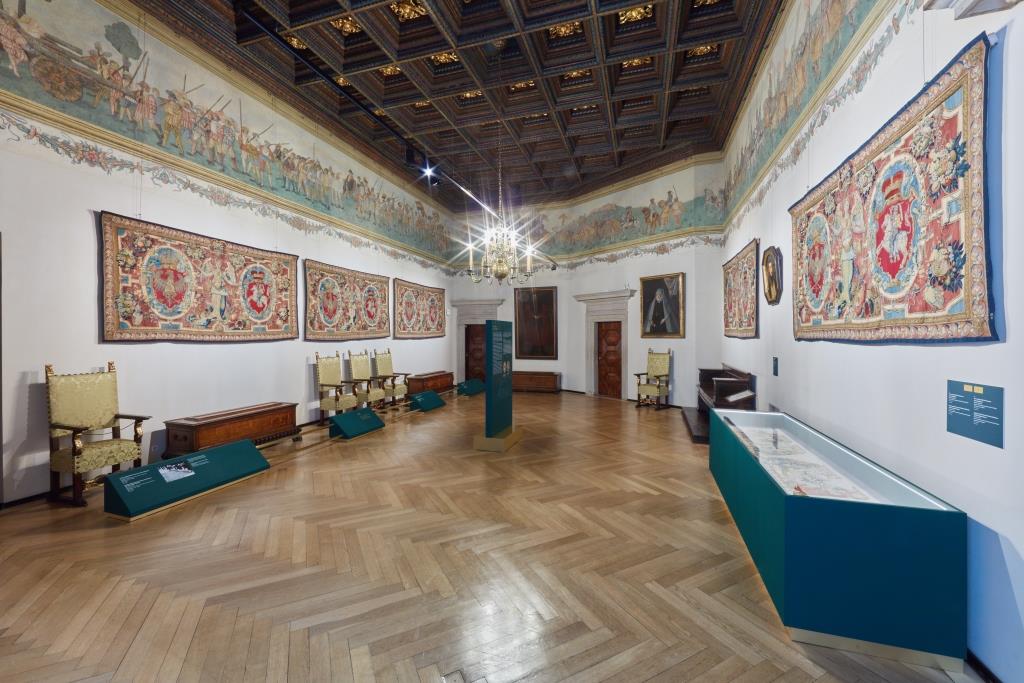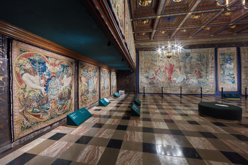 The exhibition evokes the atmosphere of the Renaissance castle, splendidly bedecked with tapestries, as it would have been five centuries ago on festive occasions. It also tells the story of the tremendous work performed by generations of conservators grappling with the effects of the damage and destruction visited upon the tapestries during their turbulent history.
