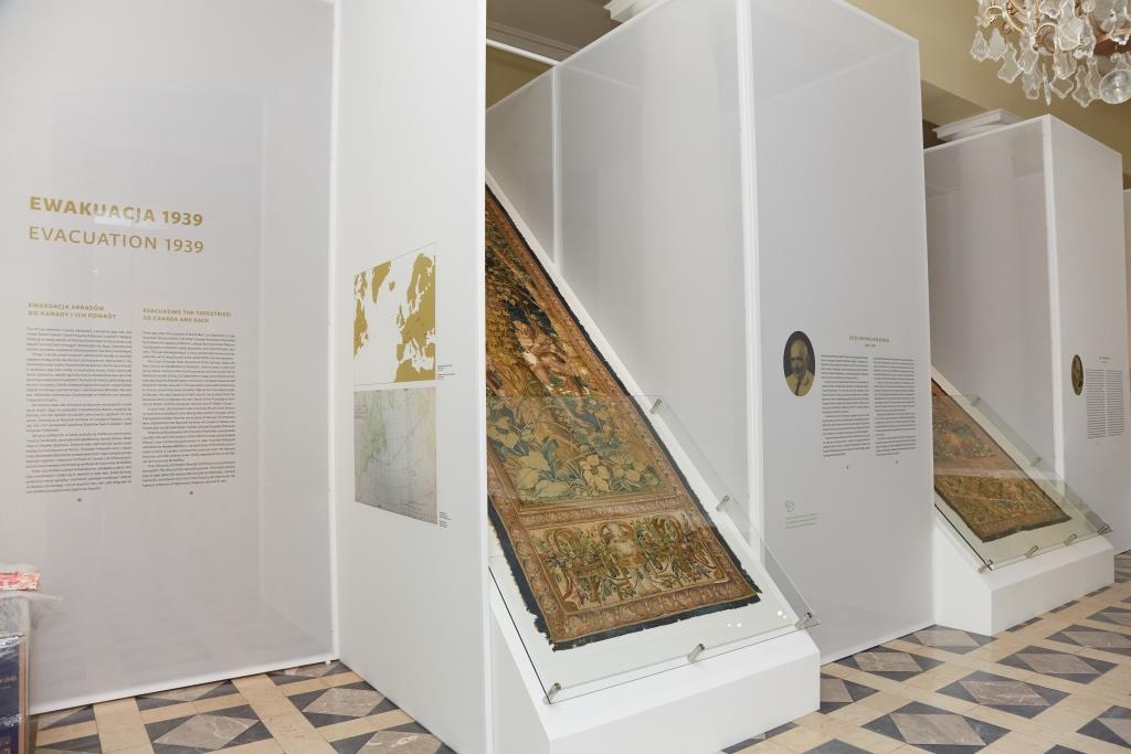 This symbolic return of Sigismund II Augustus’s collection to the walls of Wawel Castle in 2021 coincides with the exact anniversaries of two earlier homecomings. The first, which took place sixty years ago, ended the decades-long odyssey begun with the tapestries’ dramatic evacuation from Wawel in the first days of World War II. The textiles traveled a circuitous and perilous route through war-torn Europe to finally find safe haven in Canada. Their return to Poland twenty years later was celebrated on March 18, 1961, with the grand opening of a new exhibition with the tapestry collection in the starring role.