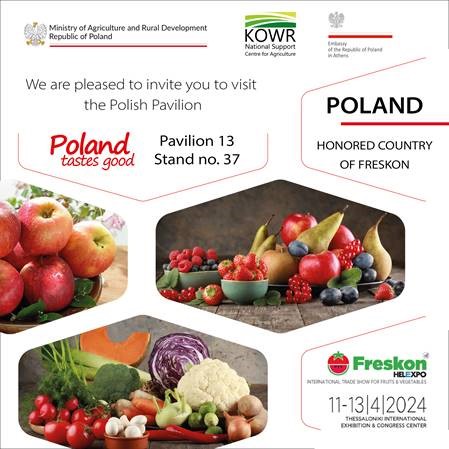 Poland will be the honoured country at the International Trade Show for Fruits & Vegetables FRESKON, which will take place in the Thessaloniki International Exhibition and Congress Centre Helexpo, from 11 to 13 of April 2024.