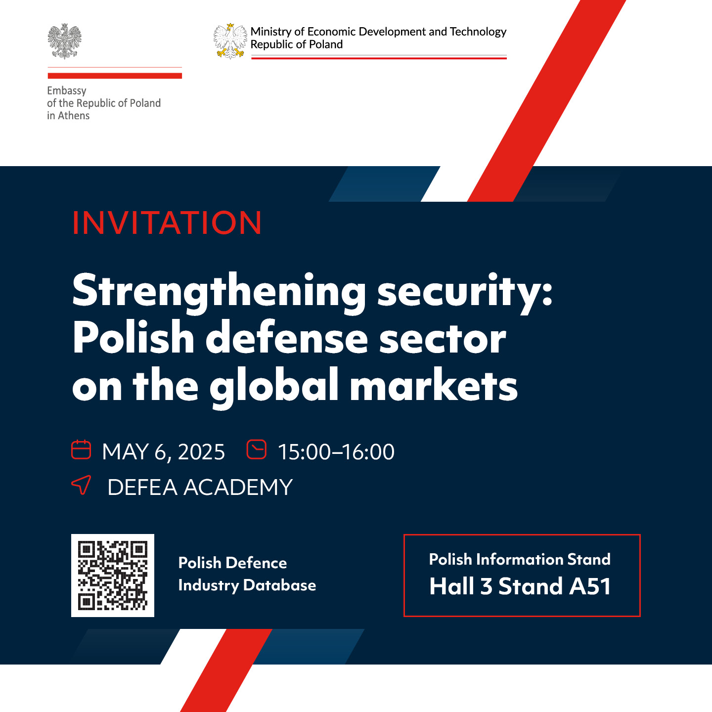 The Embassy of the Republic of Poland in Athens will participate in Defence Exhibition Athens, 6-8 May 2025.