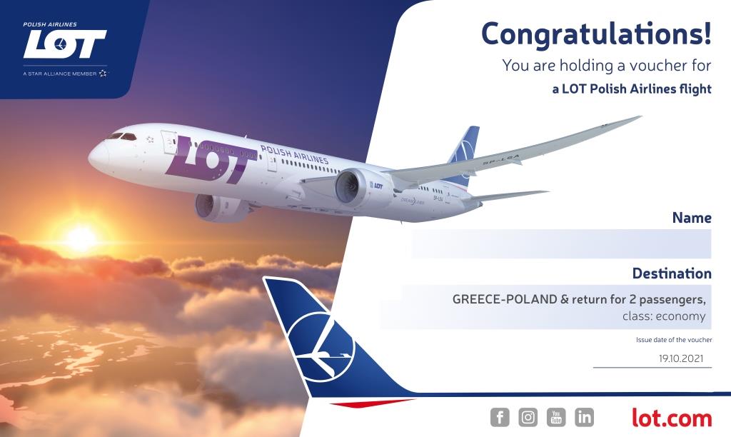 3. Win free roundtrip tickets in Economy Class from Greece to Poland on LOT Polish Airlines for you and your Travel Partner.
