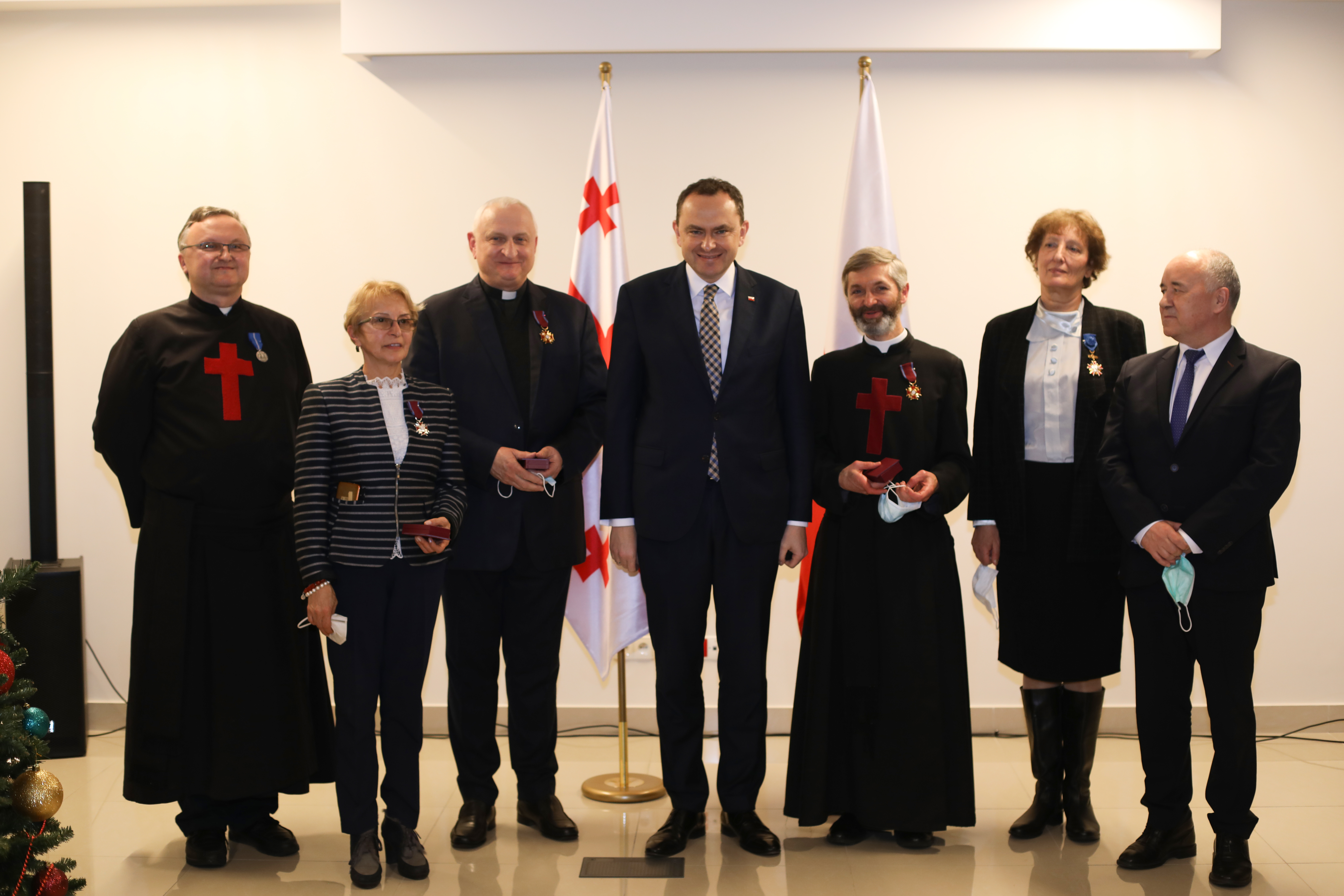 Minister Adam Kwiatkowski w trakcie pobytu w Gruzji odwiedził polskie rodziny w Tbilisi i w Lagodekhi. Złożył także wizytę w Szkole Polskiej im. Św. Królowej Jadwigi, a w ramach uroczystości w Ambasadzie RP, wręczył odznaczenia państwowe przyznane postanowieniami Prezydenta RP Pana Andrzeja Dudy m.in. za zasługi w działalności za rzecz środowiska polonijnego Gruzji, za popularyzowanie polskiej kultury i historii, a także za działalność charytatywną oraz niesienie pomocy ubogim i wykluczonym społecznie. Wśród odznaczonych znaleźli się: Pani Maria Filina, Ojciec Zygmunt Niedźwiedź, Ksiądz Witold Szulczyński, Pani Nukri Gabunia oraz Ojciec Paweł Dyl.