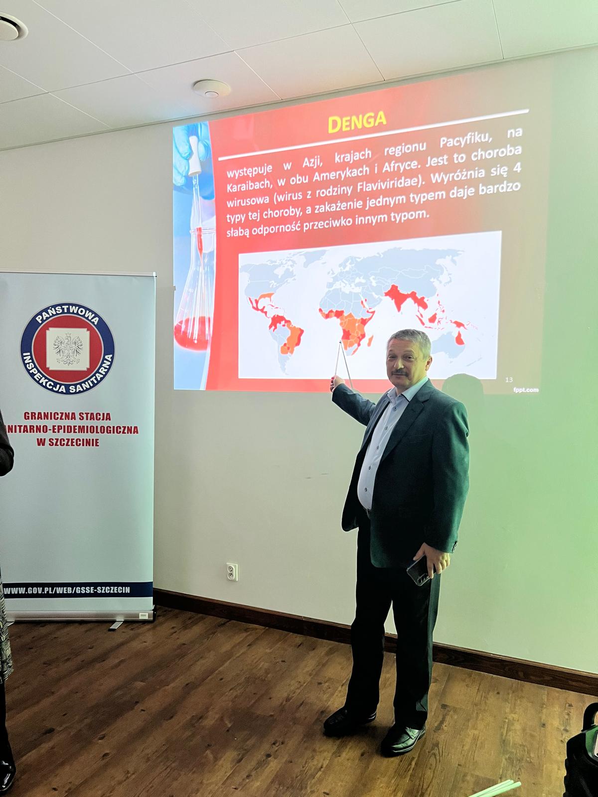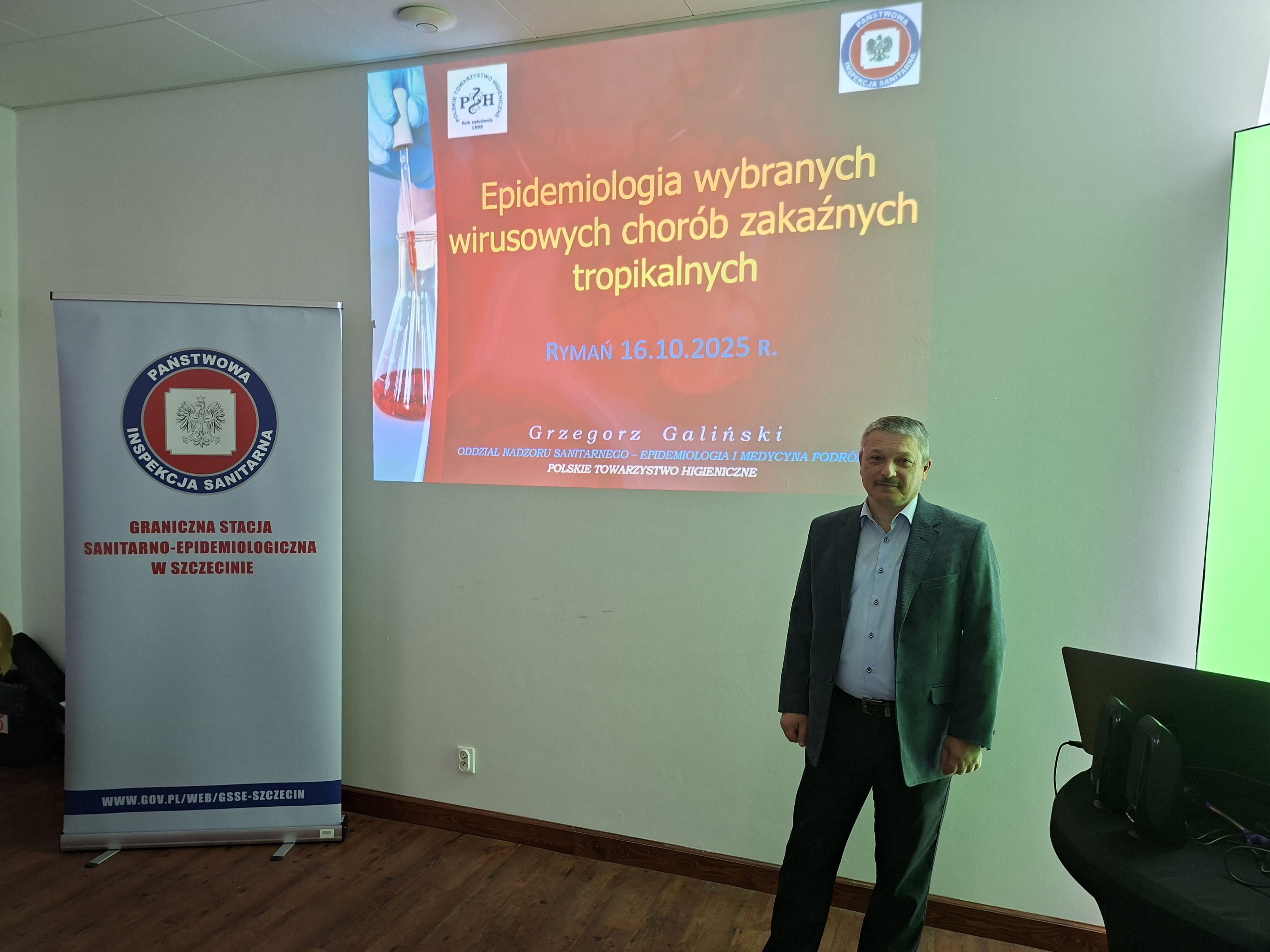W dniach 17-18 października 2025 r. w Rymaniu odbyły się XIX Warsztaty Pielęgniarek Epidemiologicznych Regionu Zachodniopomorskiego na temat: „Epidemiologia wczoraj i dziś – wyzwania czy problemy”. Na zaproszenie organizatorów – Zachodniopomorskiego Zespołu Pielęgniarek Epidemiologicznych przy Szczecińskiej Izbie Pielęgniarek i Położnych - w konferencji wziął udział również mgr inż. Grzegorz Galiński, starszy asystent w Sekcji Epidemiologii Oddziału Nadzoru Sanitarnego Granicznej Stacji Sanitarno-Epidemiologicznej w Szczecinie, zajmujący się m.in. nadzorem epidemiologicznym oraz zasadami profilaktyki w medycynie podróży, który przeprowadził prelekcję nt.: „Epidemiologia wybranych chorób zakaźnych tropikalnych”.