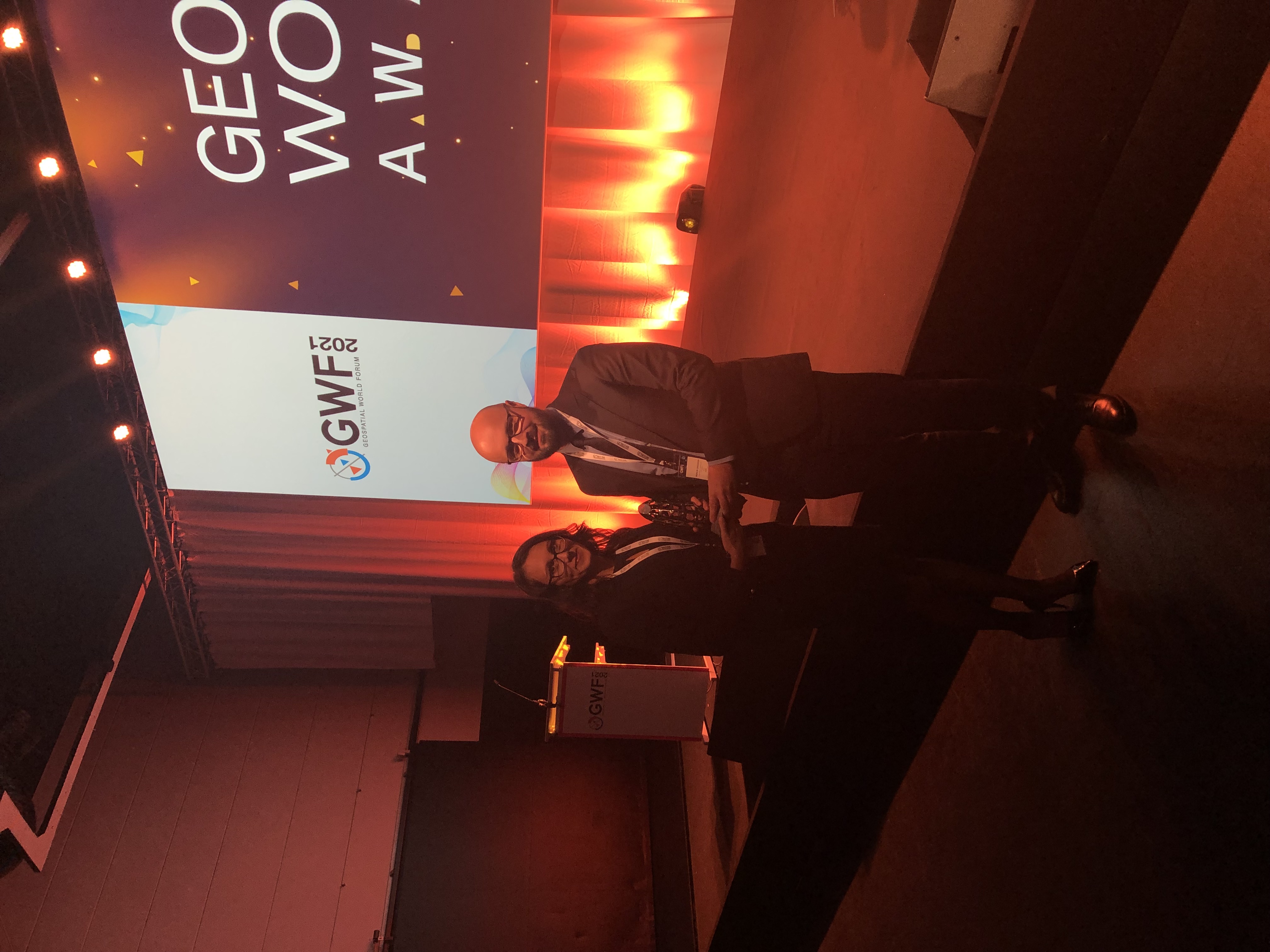 During the Geospatial World Forum 2021 held in Amsterdam on 20-22 October 2021, the award was received on behalf of the Surveyor General of Poland by Director Ewa Surma and Deputy Director Marcin Grudzień from the Department of Strategy, International Cooperation and Public Information.