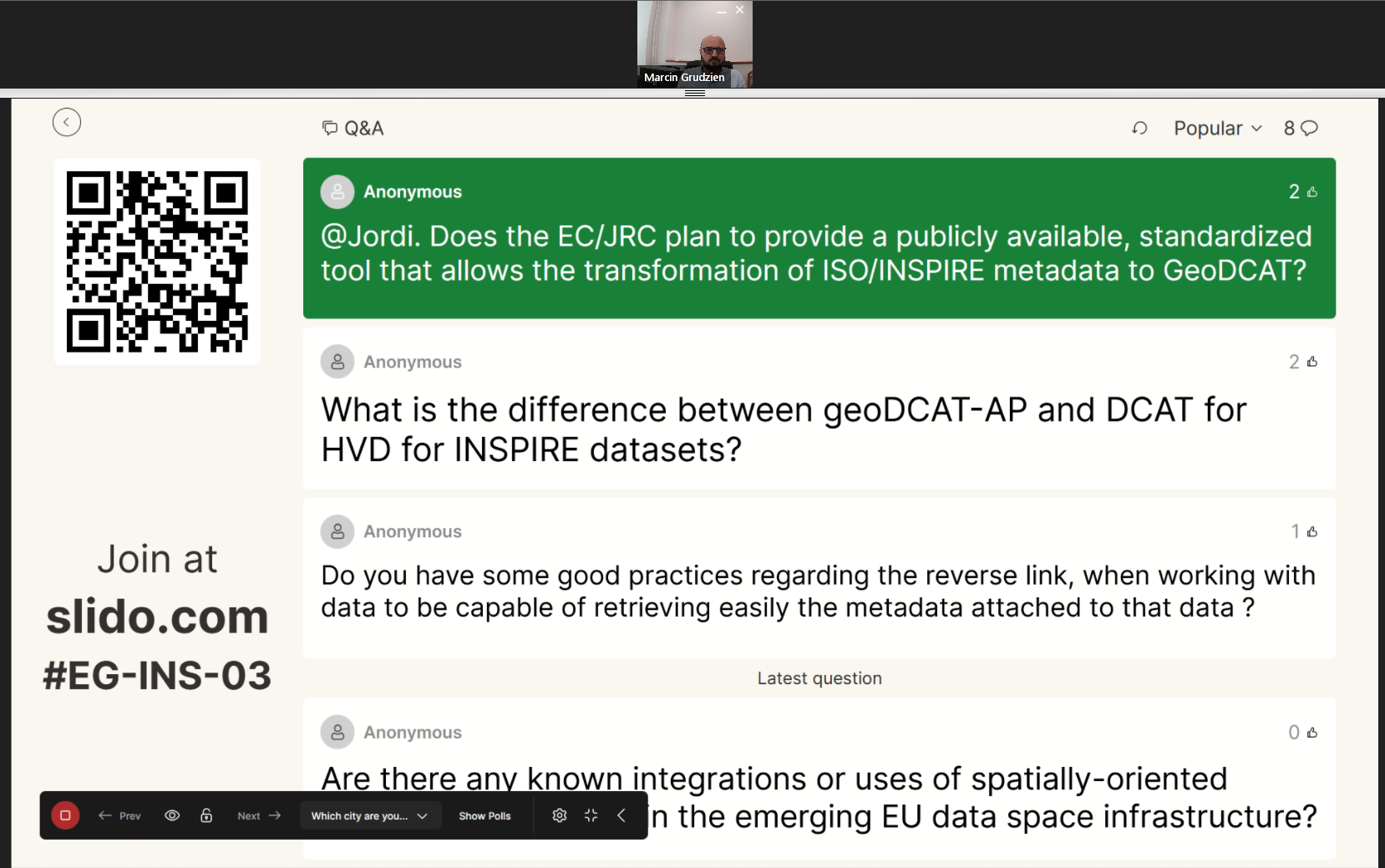 Marcin Grudzień from the Head Office of Geodesy and Cartography leading the webinar "The Future of Metadata - Between INSPIRE and GeoDCAT”