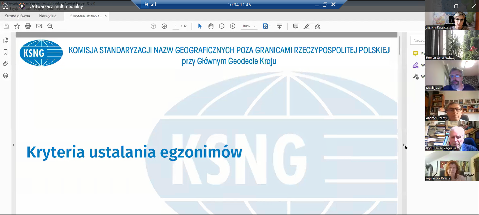 11 czerwca 2025 r. odbyło się (w formie on-line) 136. posiedzenie Komisji Standaryzacji Nazw Geograficznych poza Granicami Rzeczypospolitej Polskiej działającej przy Głównym Geodecie Kraju. W spotkaniu uczestniczyło 16 członków Komisji. Obrady prowadził Przewodniczący Komisji Maciej Zych. Na posiedzeniu omówiono ósme wydanie „Urzędowego wykazu nazw państw