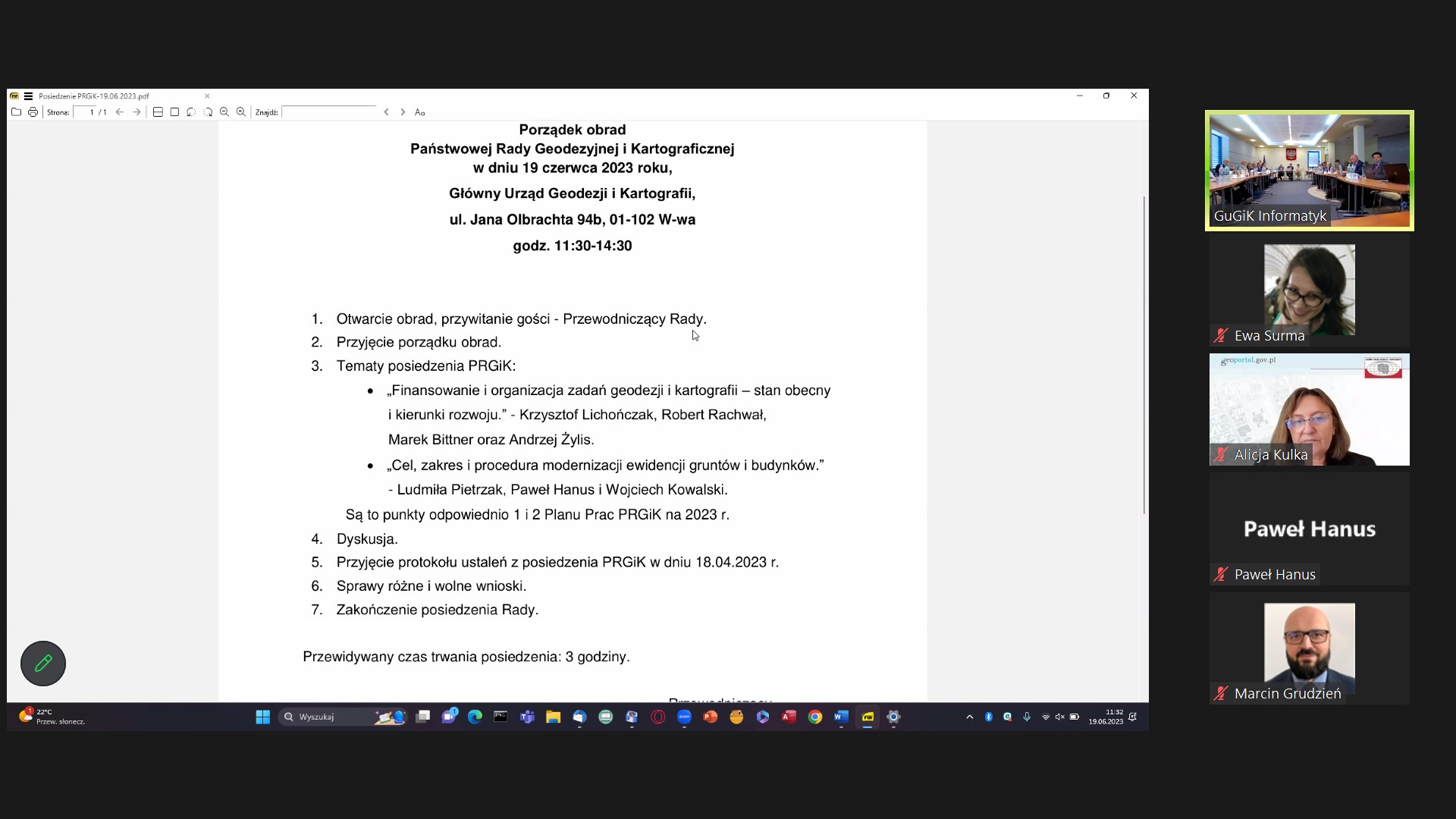 19.06.2023 r. Posiedzenie Państwowej Rady Geodezyjnej i Kartograficznej