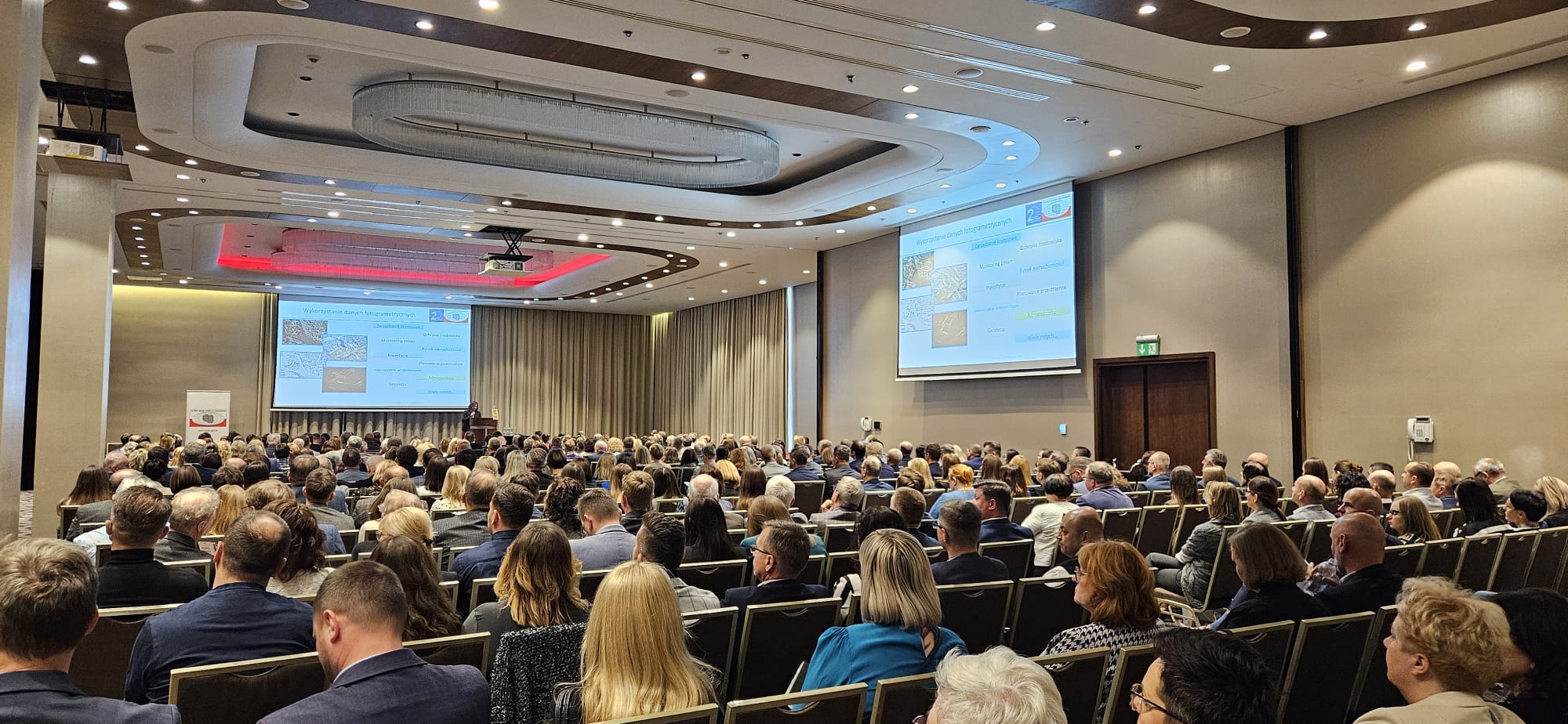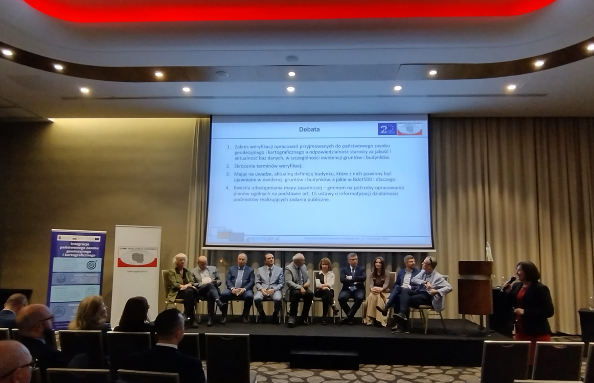 Blisko 400 uczestników konferencji - Geodetów Województw, Wojewódzkich Inspektorów Nadzoru Geodezyjnego i Kartograficznego oraz Geodetów Powiatowych wraz ze współpracownikami wysłuchało prezentacji przygotowanych przez pracowników Głównego Urzędu Geodezji i Kartografii oraz przedstawicieli Ministerstwa Funduszy i Polityki Regionalnej, Agencji Rozpoznania Geoprzestrzennego i Usług Satelitarnych, NASK czy UODO.