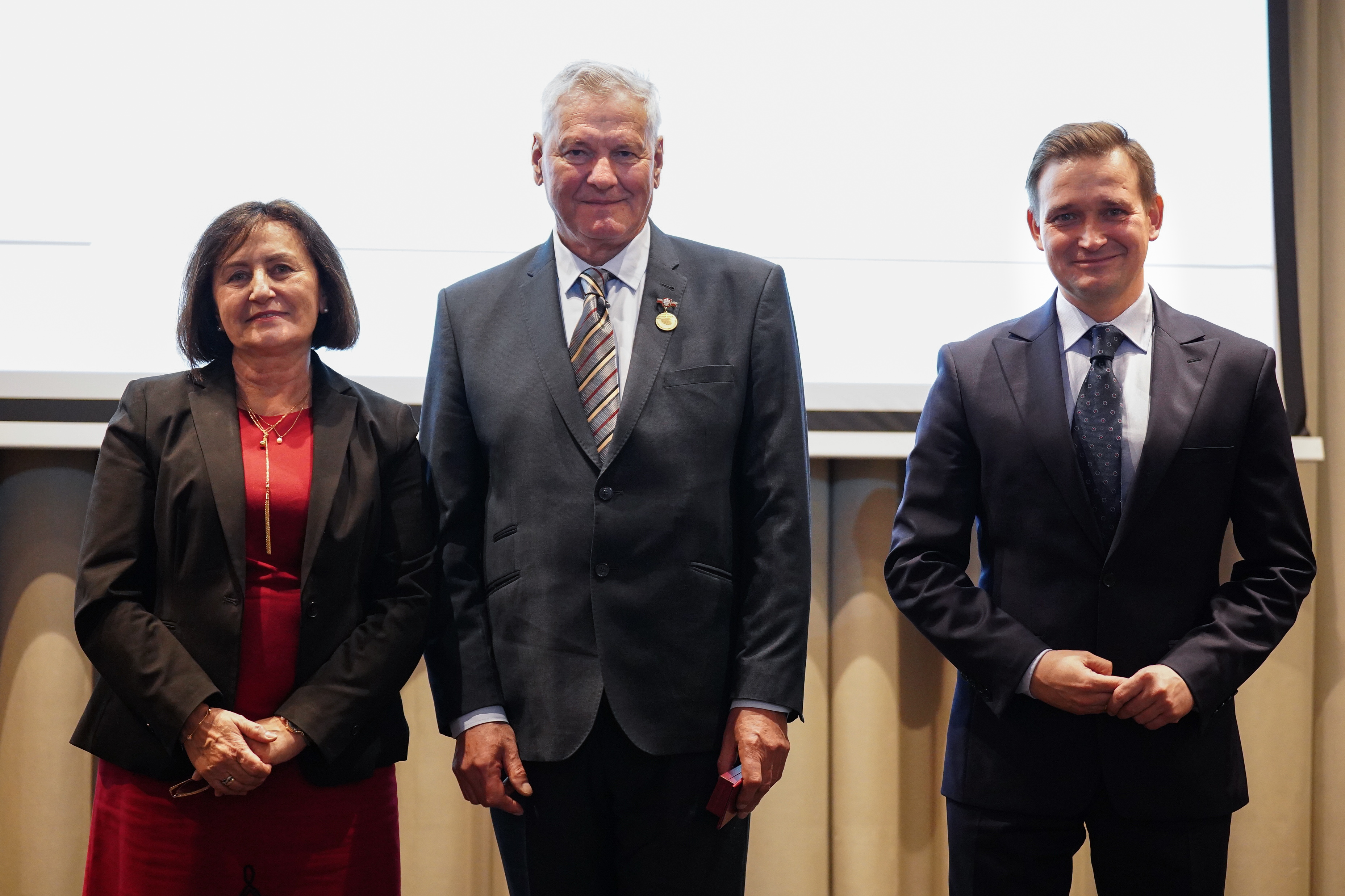 „Stan realizacji przez powiaty zadań z zakresu geodezji i kartografii, w szczególności ewidencji gruntów i budynków – wyzwania i perspektywy” - pod takim hasłem odbyła się w Warszawie 13-14 listopada 2024 r. zorganizowana przez Głównego Geodetę Kraju Alicję Kulkę konferencja Służby Geodezyjnej i Kartograficznej. Podczas spotkania został uhonorowany odznaką „ZA ZASŁUGI DLA GEODEZJI I KARTOGRAFII” Albin Kaszuba. Przyznane przez Ministra Rozwoju i Technologii odznaczenie wręczyli wspólnie Główny Geodeta Kraju Alicja Kulka z Wiceministrem Rozwoju i Technologii Michałem Jarosem.