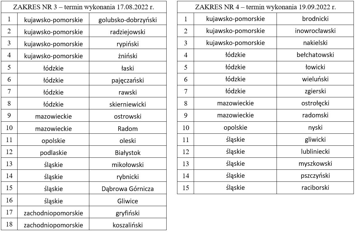 o godz. 12:00 – dla zakresu nr 4. Więcej szczegółowych informacji znajdą Państwo na stronie BIP Głównego Urzędu Geodezji i Kartografii, pod adresami: