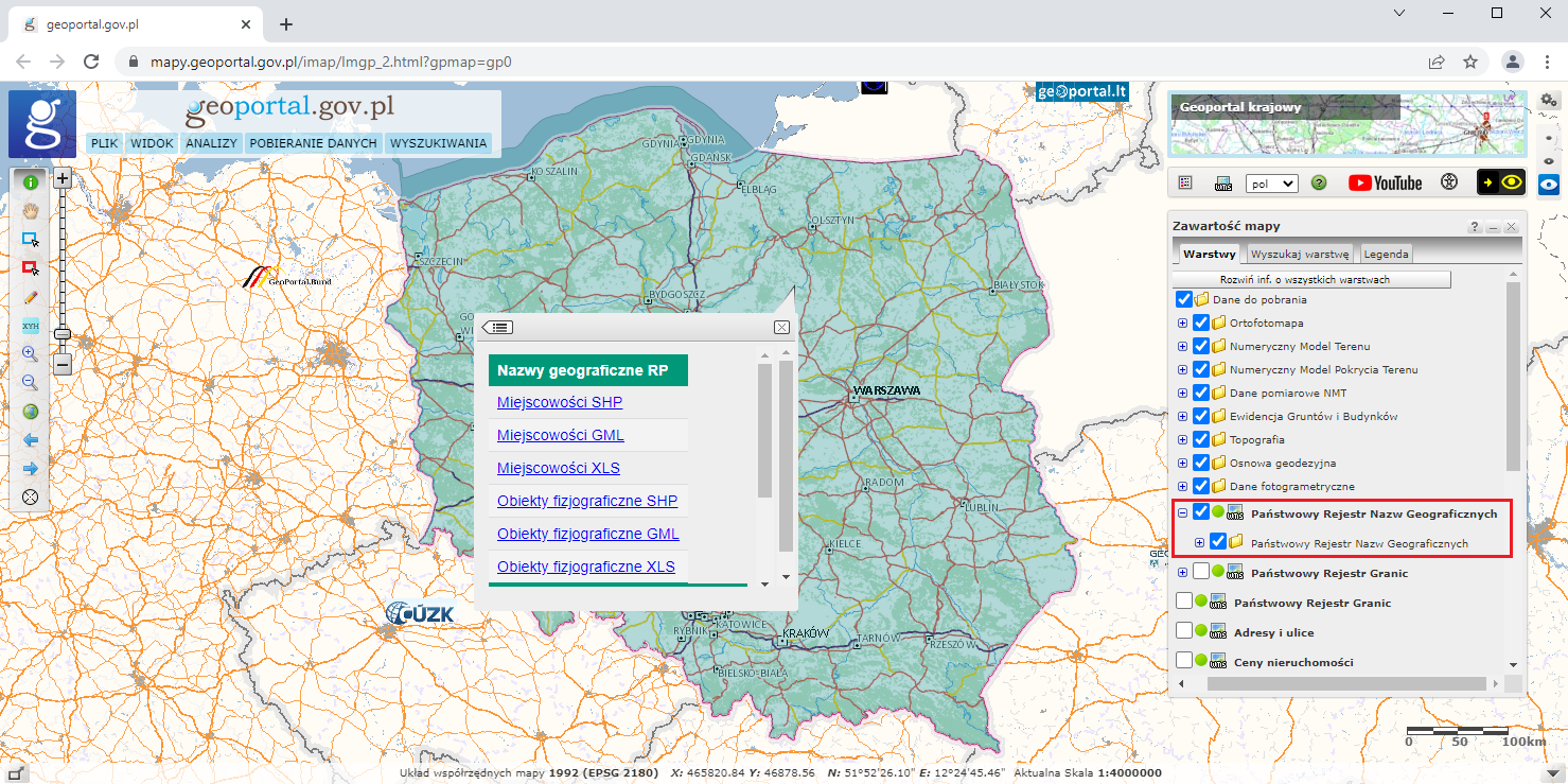 W portalu www.geoportal.gov.pl oraz w usługach przeglądania i pobierania udostępniliśmy do pobrania zaktualizowane dane PRNG w części dotyczącej rejestru nazw geograficznych RP. Obecna wersja danych zawiera wyniki prowadzonej na bieżąco aktualizacji i weryfikacji rejestru, w tym: