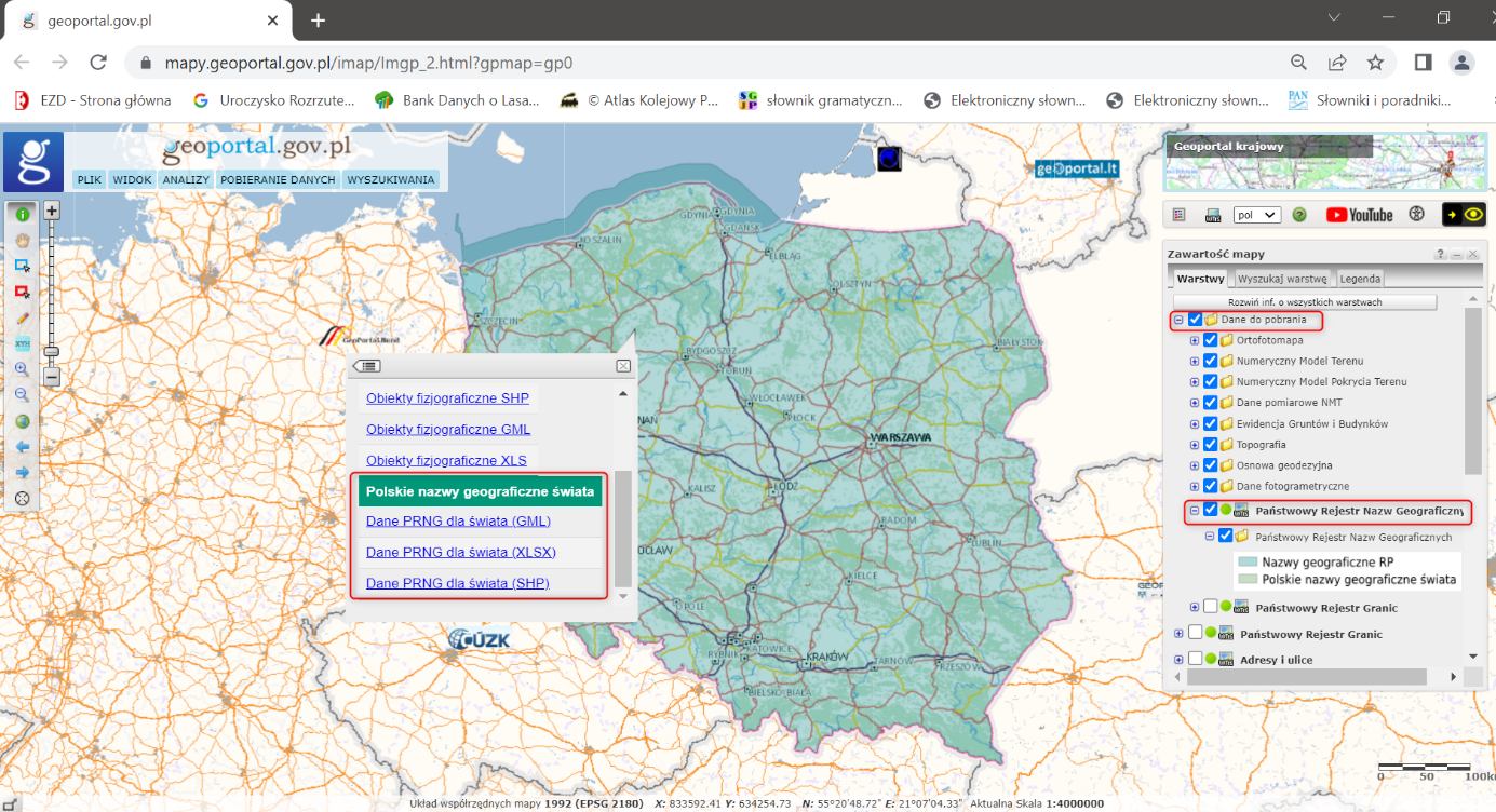 W portalu www.geoportal.gov.pl w zakładce „Dane do pobrania” udostępniliśmy zaktualizowane dane z Państwowego Rejestru Nazw Geograficznych (PRNG) w części dotyczącej rejestru polskich nazw geograficznych świata. Obecna wersja danych zawiera wyniki prowadzonej na bieżąco aktualizacji