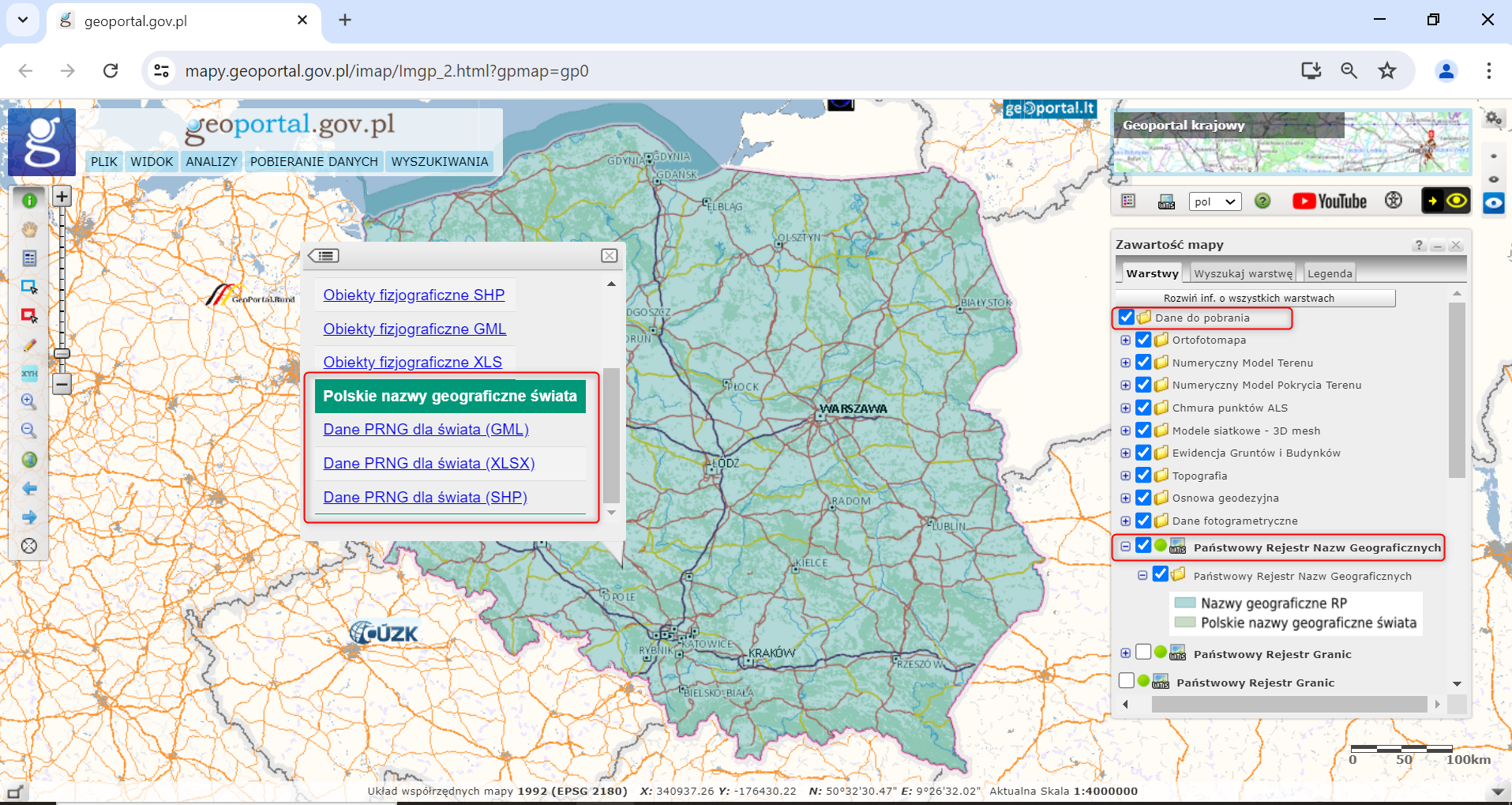 W portalu www.geoportal.gov.pl w zakładce „Dane do pobrania” udostępniliśmy zaktualizowane dane z Państwowego Rejestru Nazw Geograficznych (PRNG) w części dotyczącej rejestru polskich nazw geograficznych świata. Obecna wersja danych zawiera wyniki prowadzonej na bieżąco aktualizacji