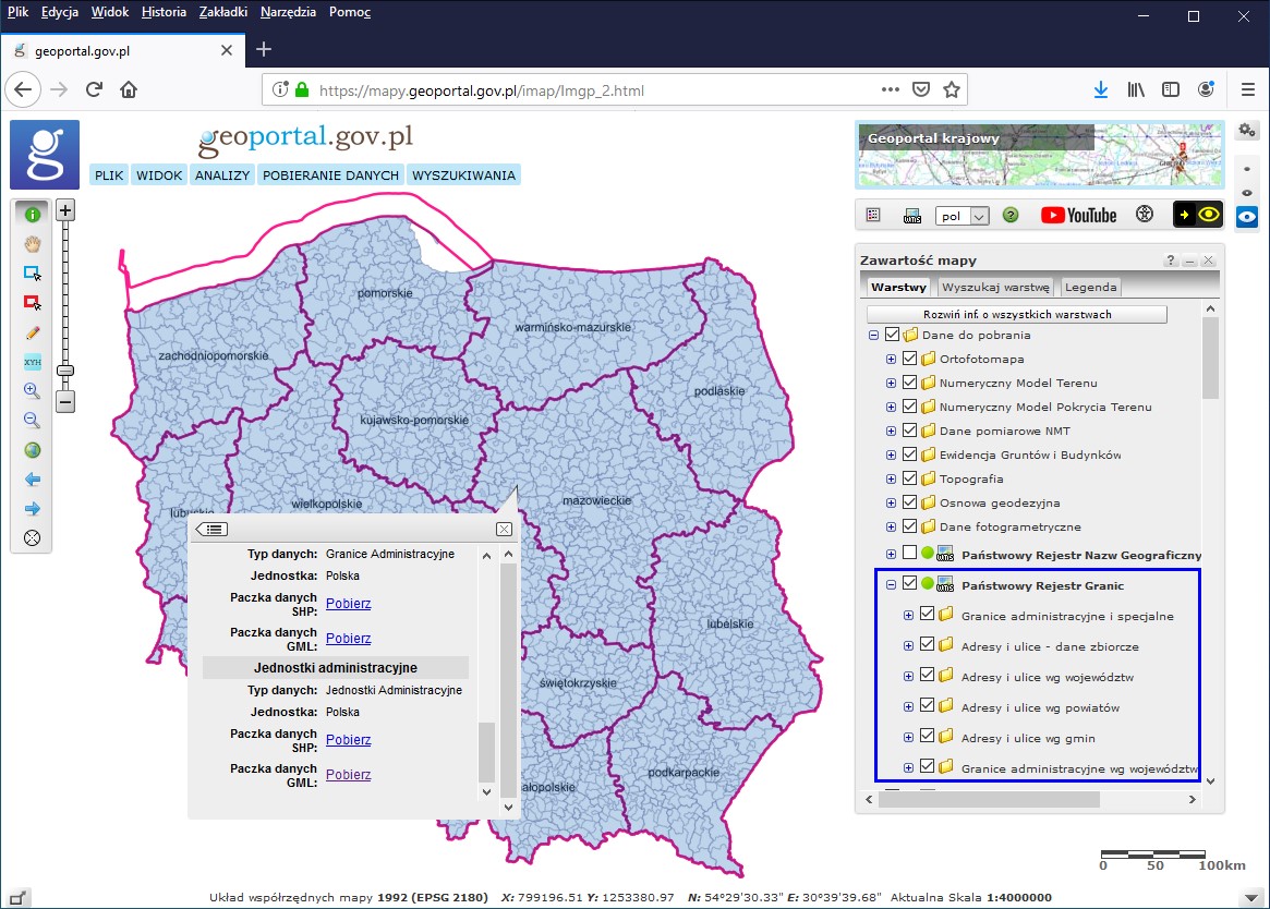 Zaktualizowane dane PRG według stanu na dzień 1 stycznia 2025 r. można bezpłatnie pobrać do powszechnego wykorzystania m.in. poprzez skorowidze publikowane w usłudze WMS https://mapy.geoportal.gov.pl/wss/service/PanstwowyRejestrGranic.