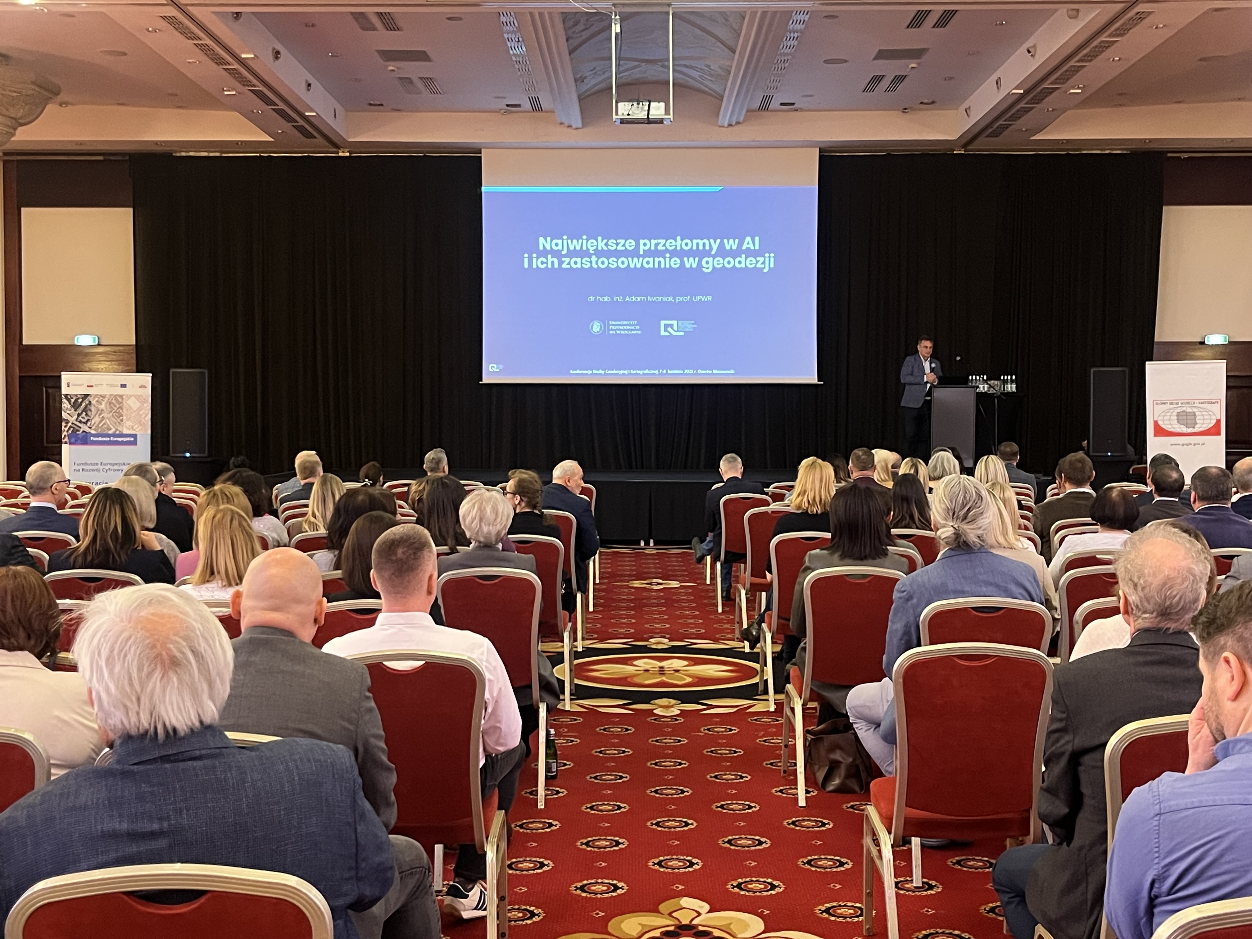 Drugi dzień konferencji rozpoczęła prezentacja dr. hab. inż. Adama Iwaniaka, prof. UPW „Największe przełomy w AI i ich zastosowanie w geodezji”. Następnie zaprezentowano projekty prowadzone przez GUGiK oraz problematykę dotyczącą bieżących zagadnień nurtujących Służbę Geodezyjną i Kartograficzną.