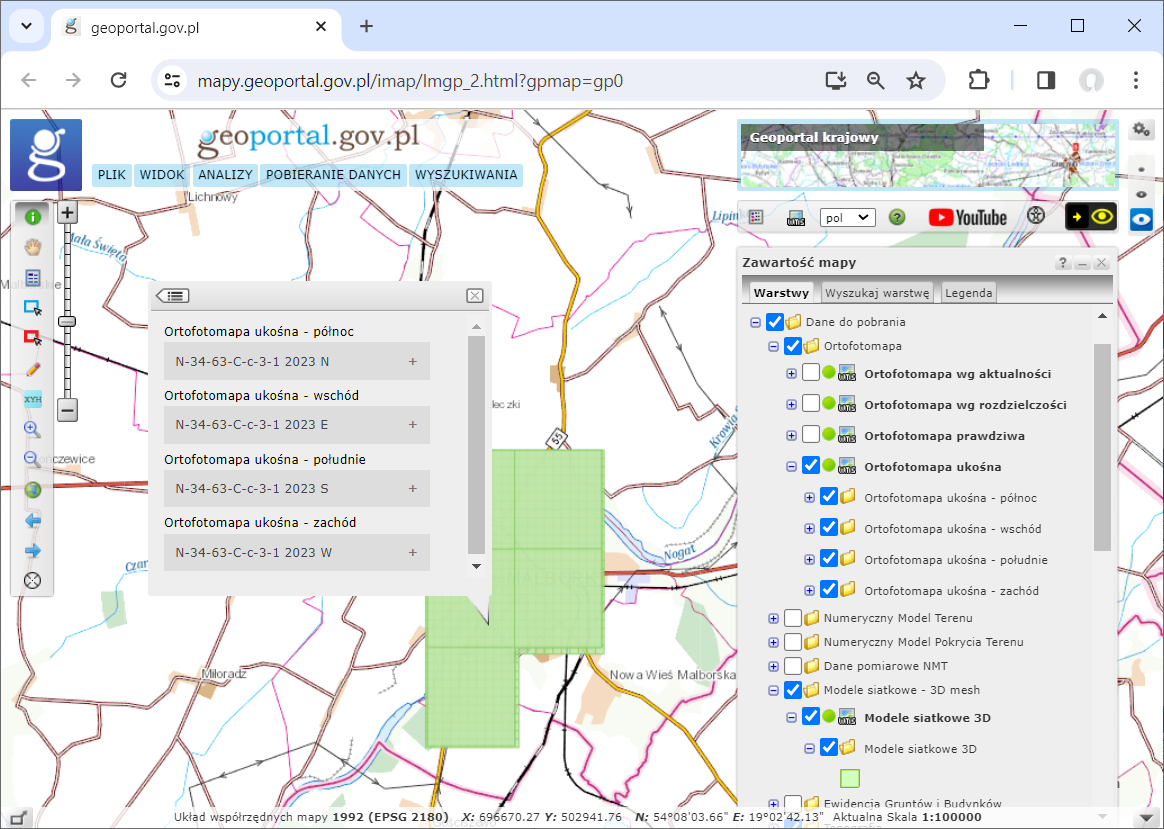 Do Państwowego Zasobu Geodezyjnego i Kartograficznego przyjęliśmy kolejne wysokorozdzielcze dane fotogrametryczne dla miasta Malbork, opracowane na zlecenie Głównego Geodety Kraju, w tym::