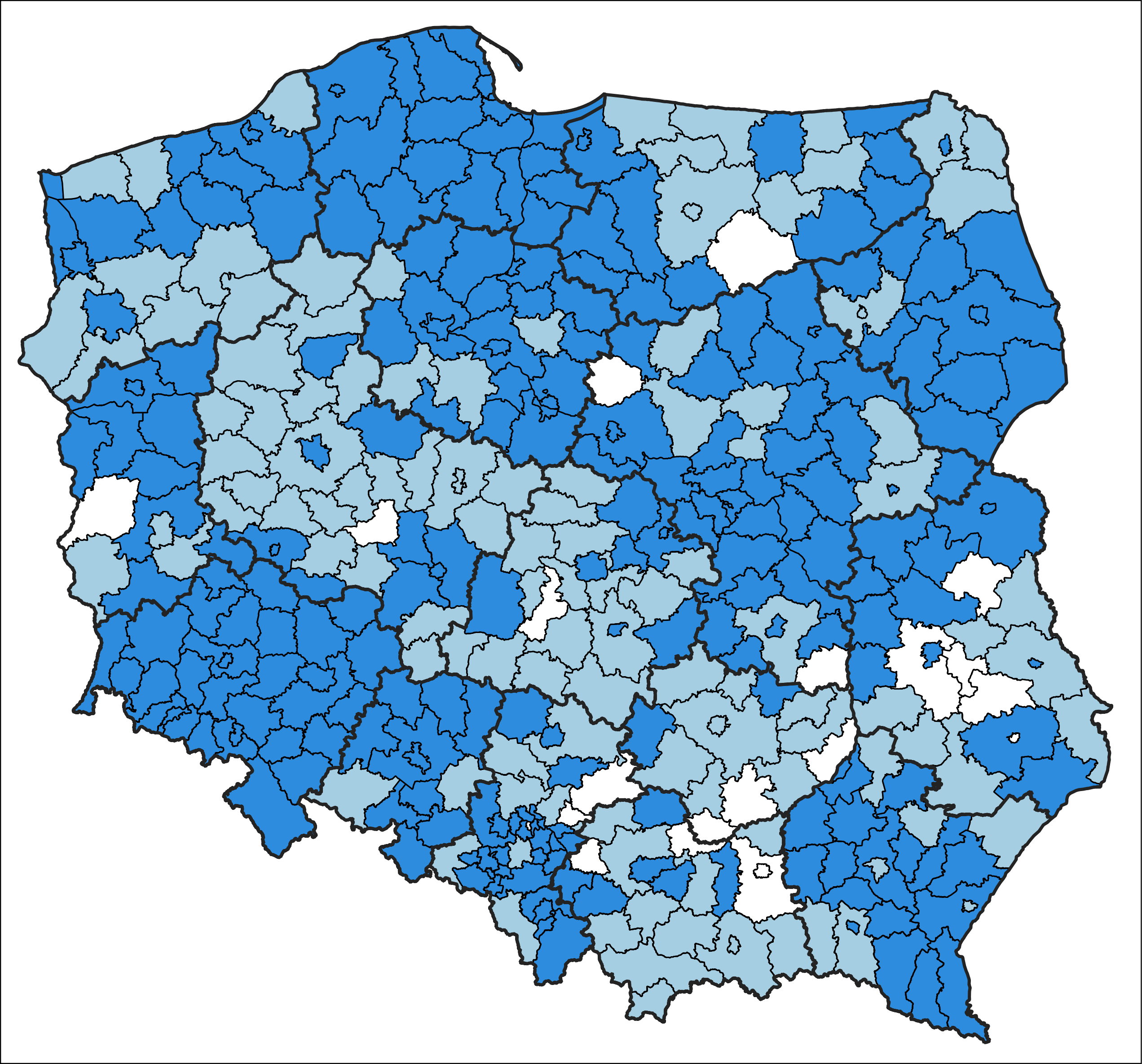 Na terenie całego kraju prace wdrożeniowe zakończono w 240 powiatach, natomiast 119 powiatów jest aktualnie w trakcie tych prac.