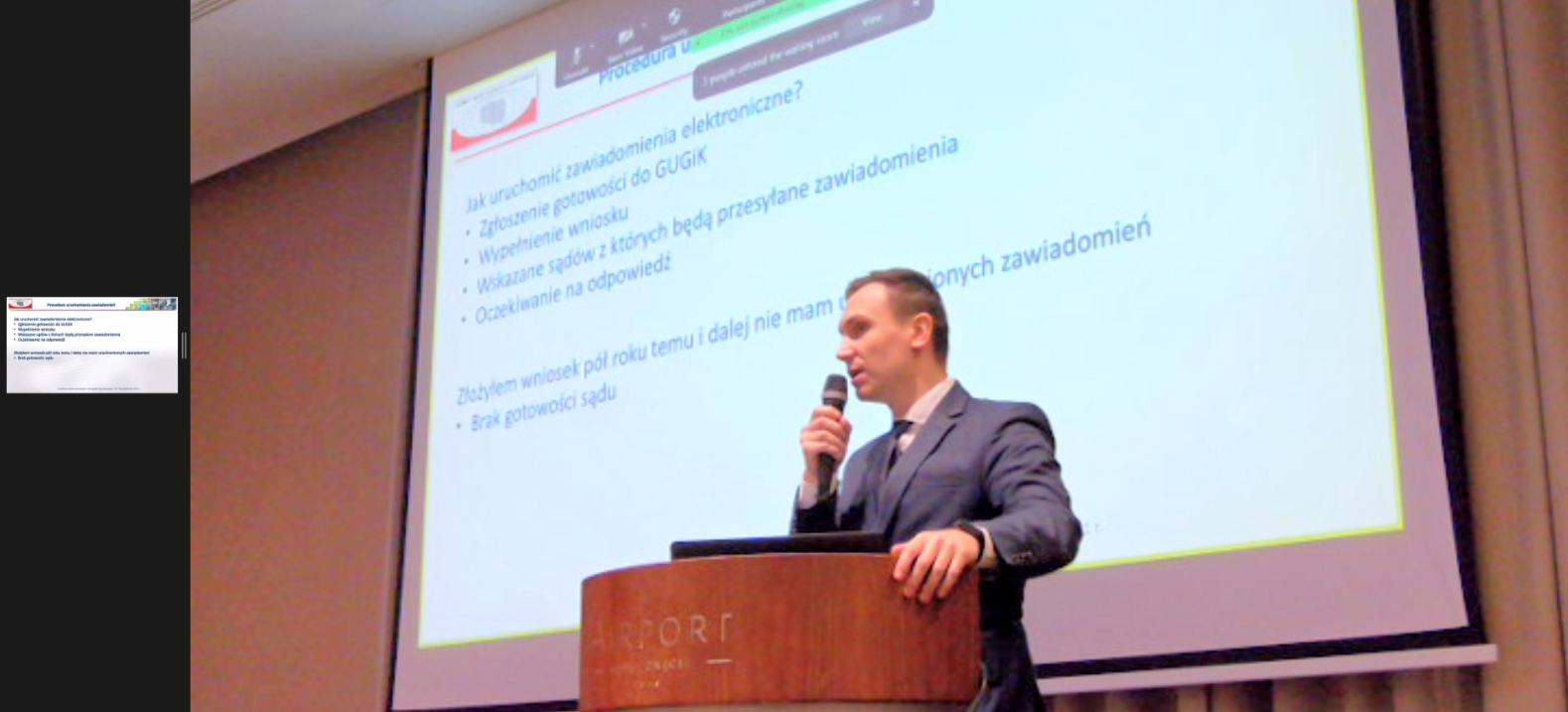 Prezentacją „ ZSIN i jego wykorzystanie” rozpoczął się drugi dzień Spotkania Służby Geodezyjnej i Kartograficznej zorganizowanego przez Głównego Geodetę Kraju dr. hab. inż. Waldemara Izdebskiego. W konferencji w formie hybrydowej bierze udział ponad 1000 osób - ok. 350 stacjonarnie oraz 650 zdalnie - Wojewódzkich Inspektorów Nadzoru Geodezyjnego i Kartograficznego, Geodetów Województw, Geodetów Powiatowych, Kierowników PODGiK i ich współpracowników.