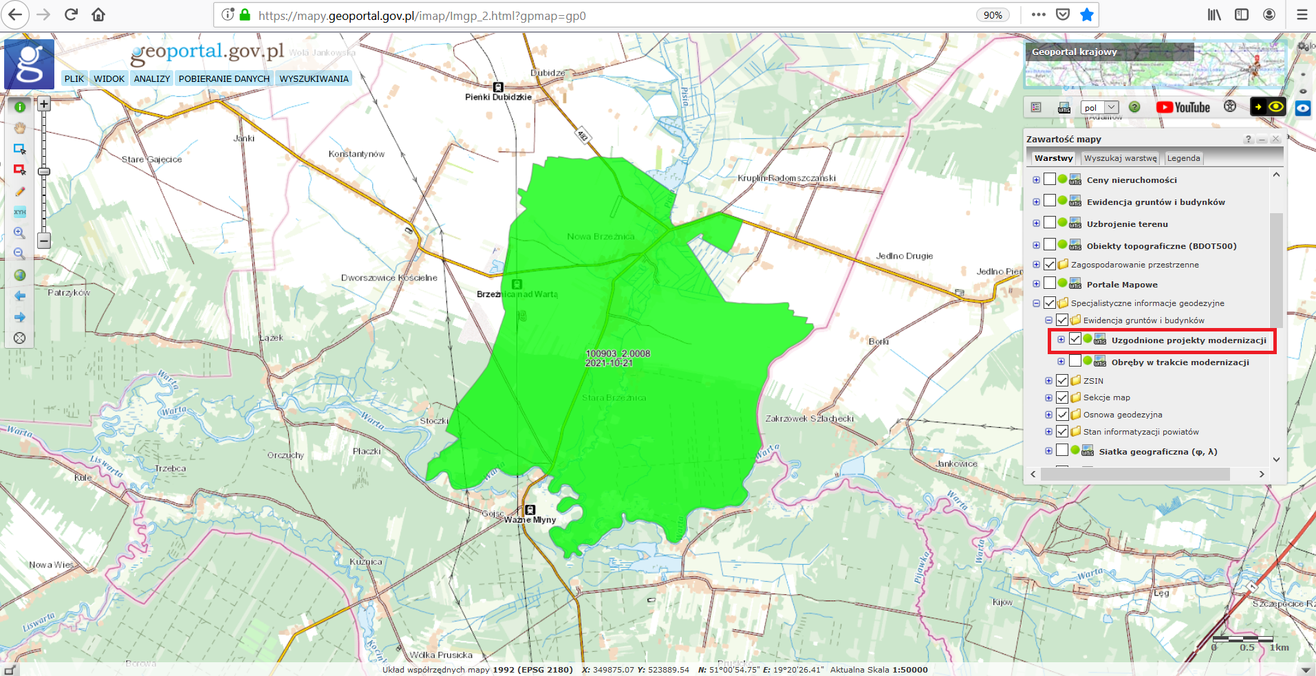 W serwisie www.geoportal.gov.pl jest publikowana warstwa „Uzgodnione projekty modernizacji EGiB”, na której można zobaczyć lokalizację zaopiniowanych projektów modernizacji.