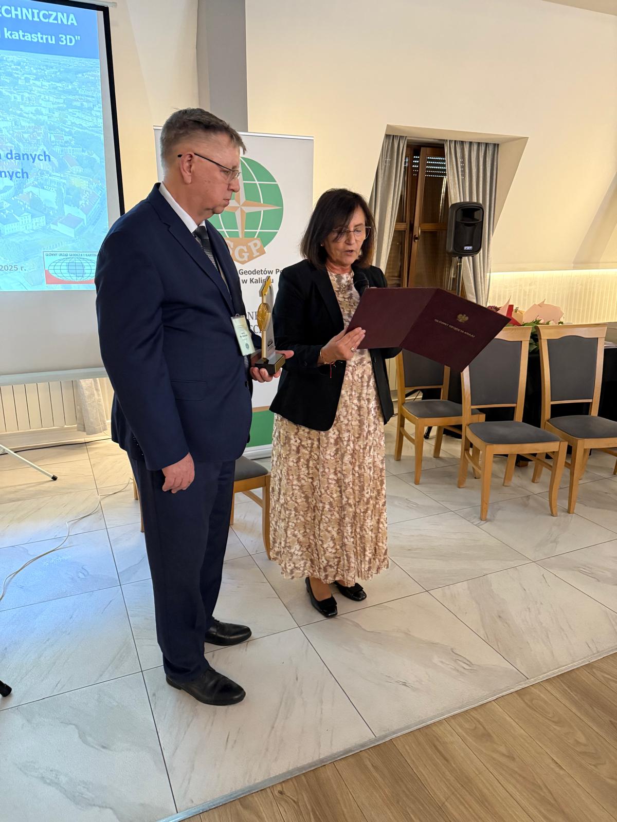 Z okazji jubileuszu GGK przekazała na ręce organizatorów pamiątkową statuetkę oraz list gratulacyjny doceniając trud związany z organizacją konferencji o ciągle aktualnej i bardzo ważnej dla geodezji tematyce związanej z państwowym rejestrem, jakim jest ewidencja gruntów i budynków (kataster nieruchomości).