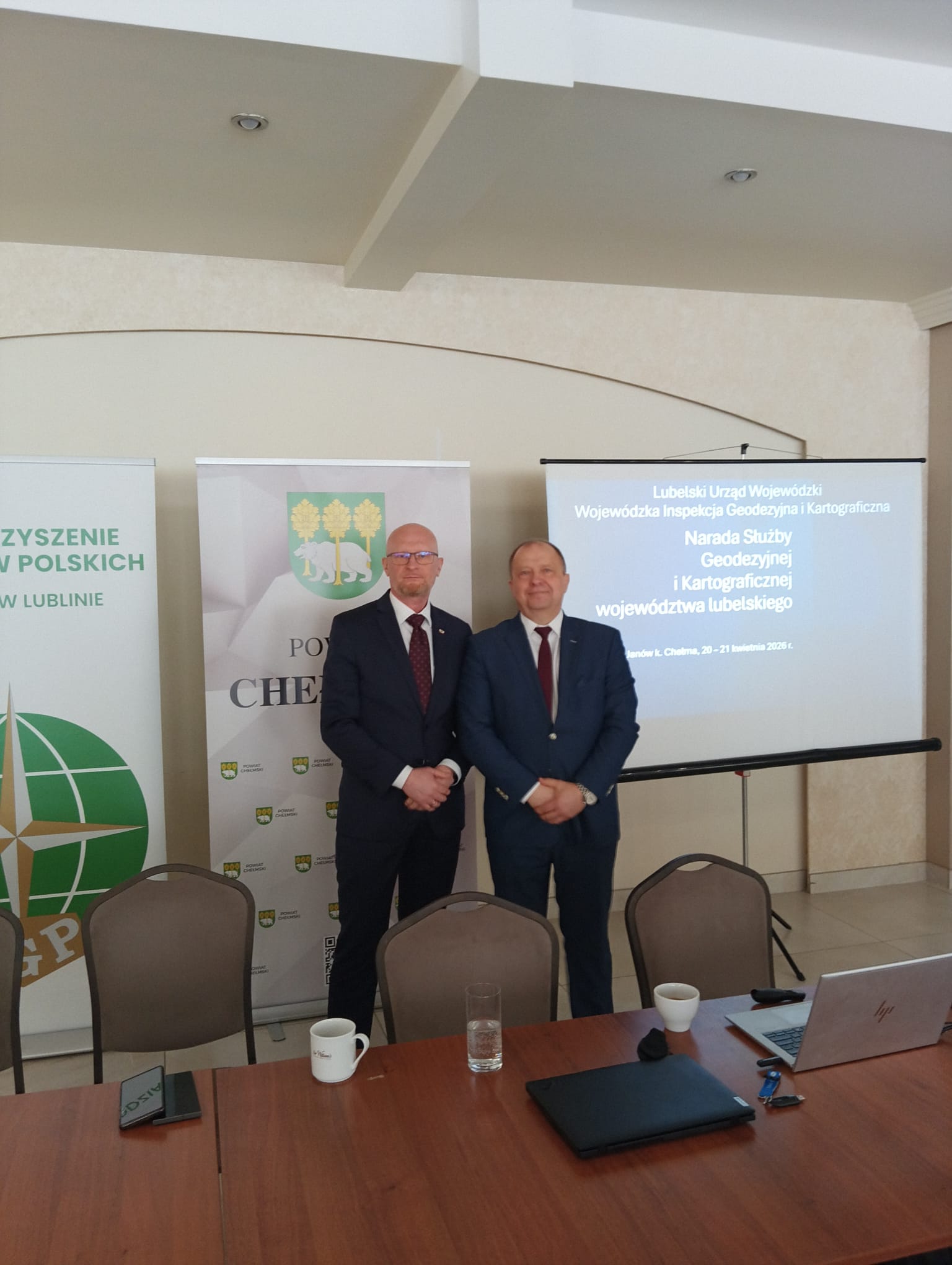 20 kwietnia 2026 r. w Janowie koło Chełma Główny Geodeta Kraju Andrzej Żylis wziął udział w naradzie Służby Geodezyjnej i Kartograficznej województwa lubelskiego. Podczas spotkania omawiano prace legislacyjne związane ze zmianami w przepisach Prawa geodezyjnego i kartograficznego oraz wnioski i zalecenia GGK i WINGiK wynikające ze stanowisk, postępowań administracyjnych i działań SGiK. Zajmowano się również finansowaniem zadań Służby Geodezyjnej i Kartograficznej od 01.01.2026 r., w tym tworzeniem planu wydatków na rok bieżący, a także działaniami nadzorczymi i kontrolnymi, w szczególności w zakresie tworzenia i dostosowywania baz danych do wymogów przepisów prawa.