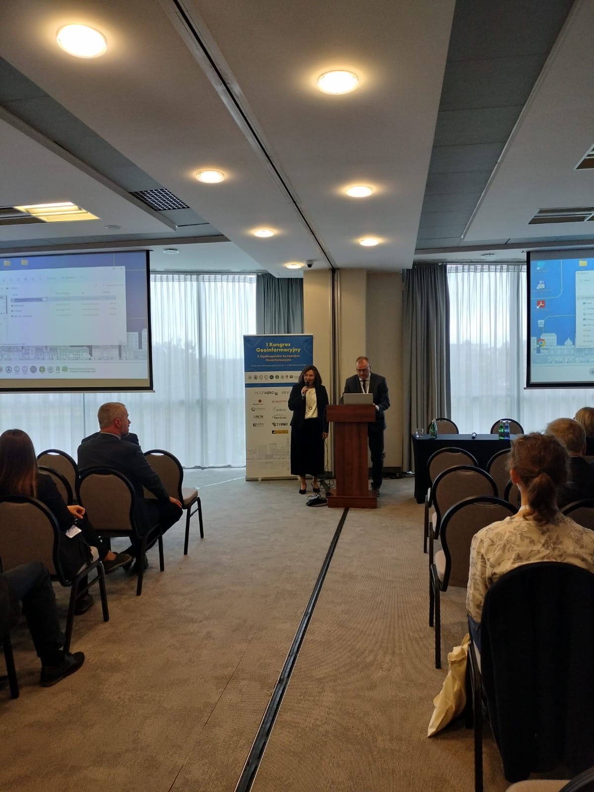GGK Alicja Kulka rozpoczynając konferencję przedstawiła zarówno bieżące, jak i planowane działania GGK w obszarze geodezji i kartografii. W panelu „Geoinformacje w administracji”, który wspólnie poprowadzili GGK Alicja Kulka oraz były GGK Kazimierz Bujakowski, wystąpili m.in. Dyrektor Departamentu Geodezji i Kartografii - Anna Bober oraz Marcin Lebiecki przedstawiając tematykę związaną z kontrolami danych fotogrametrycznych oraz działania w obszarze kartografii.
